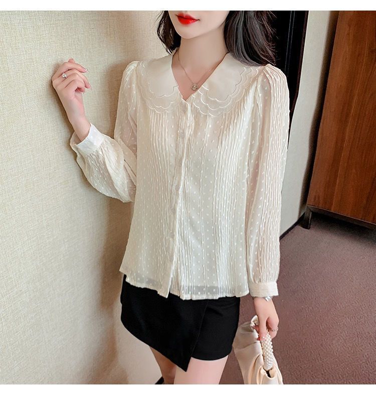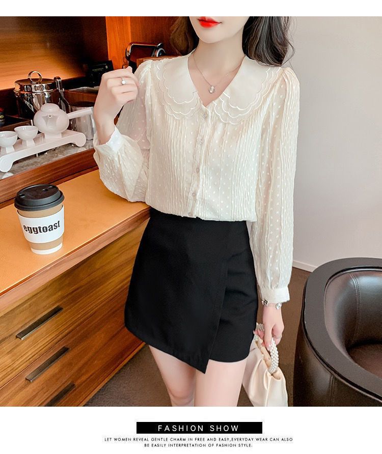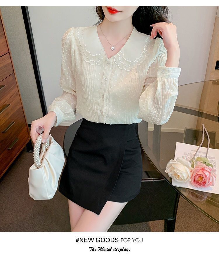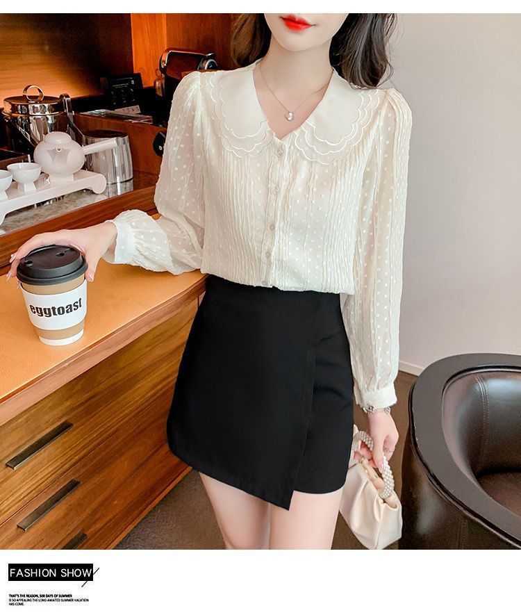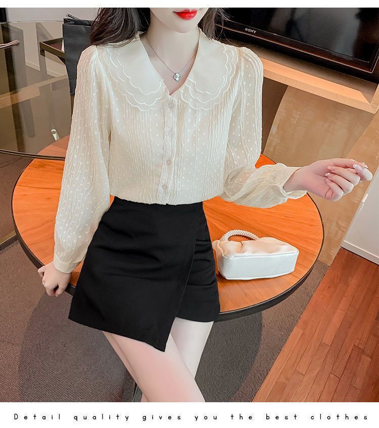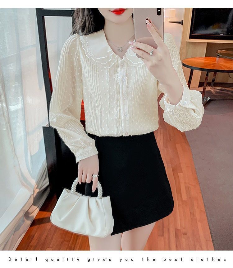 봄 긴팔 인형 칼라 쉬폰 셔츠 여성용 20223 가을 새 여성 밀착 슬림 긴팔 셔츠스토어 가기