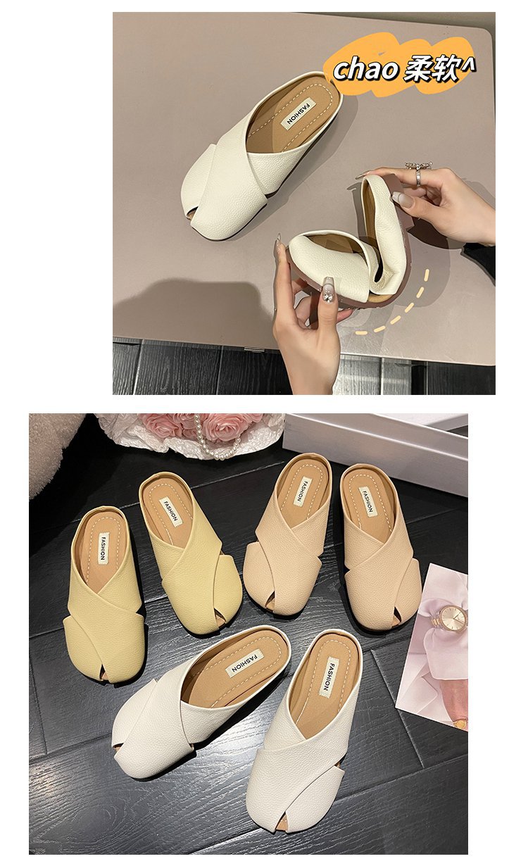 Baotou 하프 슬리퍼 여성 여름 겉옷 2023 새로운 임산부 부드러운 밑창 땋은 플랫 바닥 물고기 입 뮬 프랑스 샌들스토어 가기