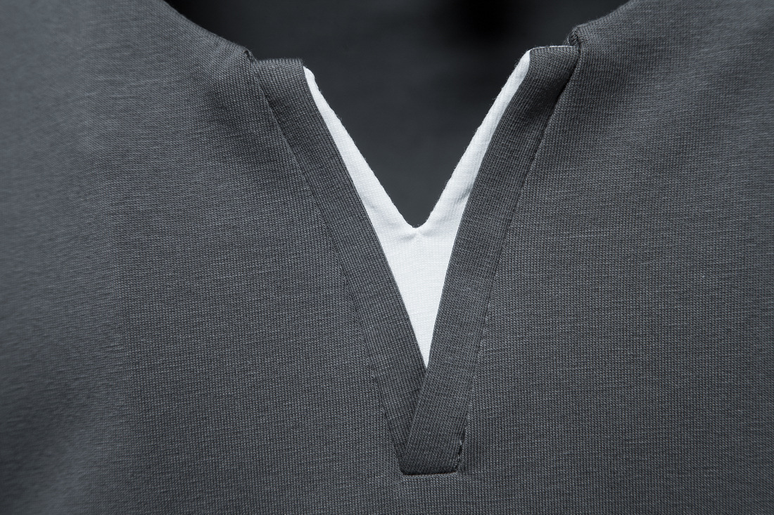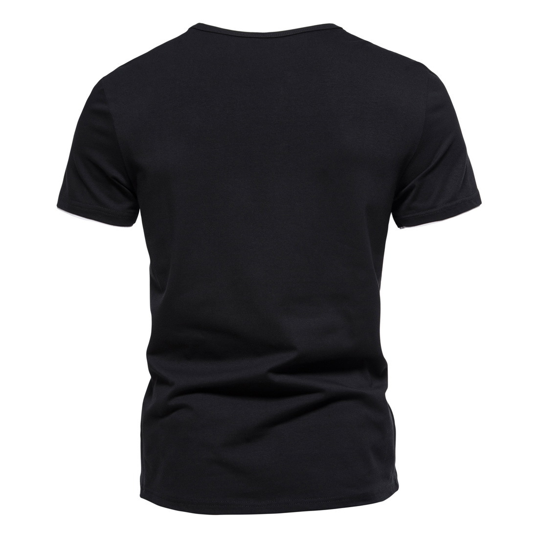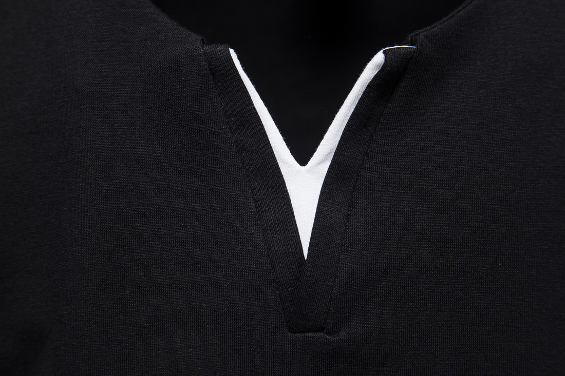 2023 여름 대외 무역 새로운 남자의 가짜 투피스 V-넥 반팔 티셔츠 패션 남성 캐주얼 단색 반팔 티셔츠