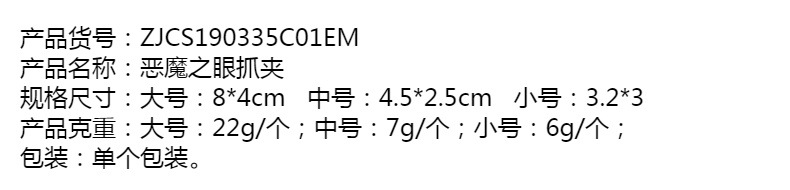 유럽과 미국 머리 앞머리 측면의 크고 중간 스몰 사이즈 새로운 조합은 머리 액세서리 악마의 눈 머리핀 그립 클립을 다치게하지 않습니다