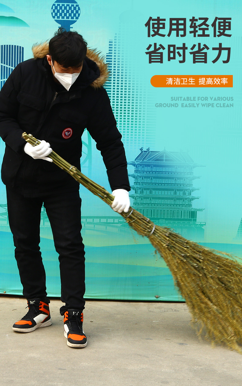 지체 일체형 큰 빗자루 낡은 가지 손잡이 안뜰 눈 쓸기 대나무 빗자루 야외 위생 일꾼 쓸기 빗자루