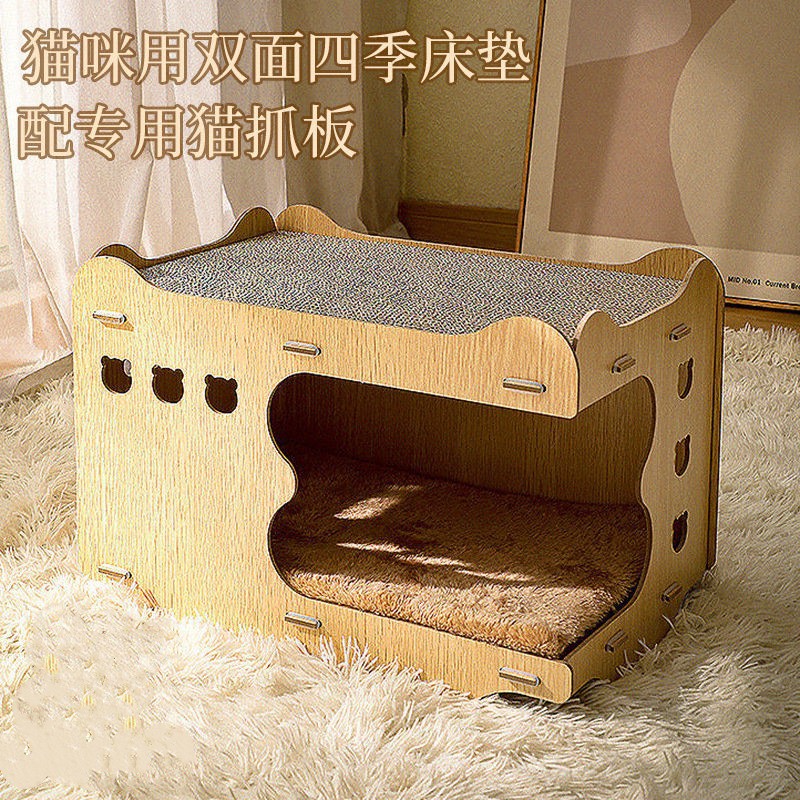 고양이 둥지 고양이 스크래치 보드 통합 내마모성 및 디피 방지 수직 2 층 중첩 가능한 나무 고양이 집 골판지 고양이 장난감