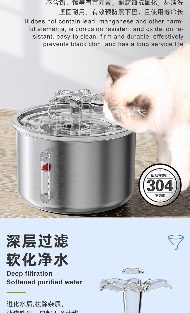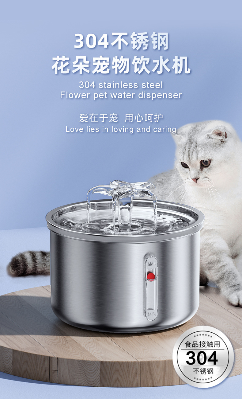 애완 동물 물 디스펜서 스테인레스 스틸 창 고양이 자동 물 디스펜서 작은 꽃 분수 고양이와 개 지능형 물 공급 용품