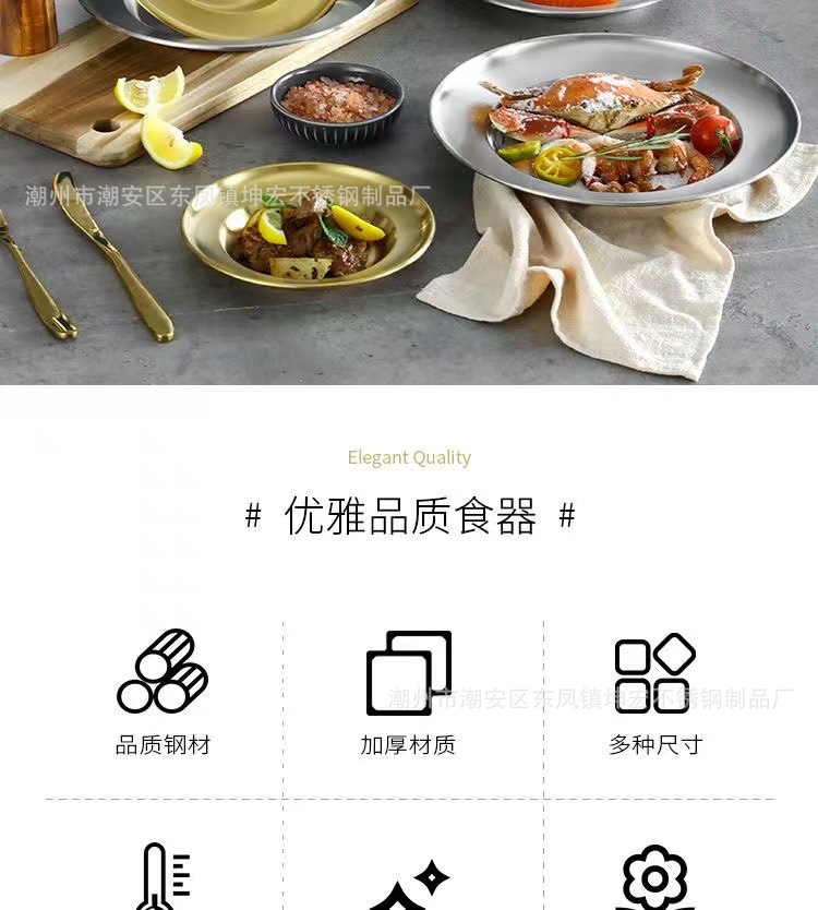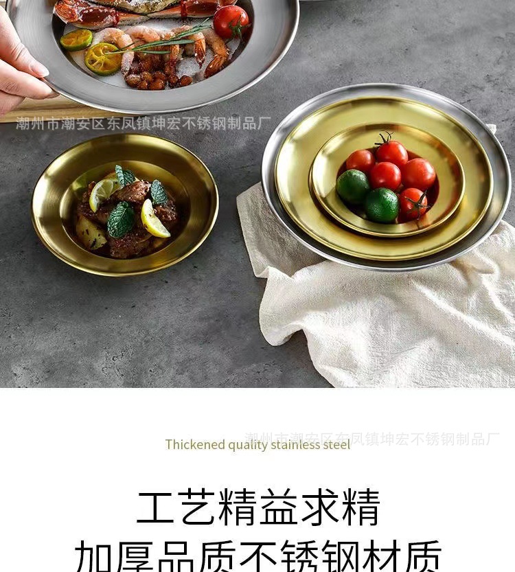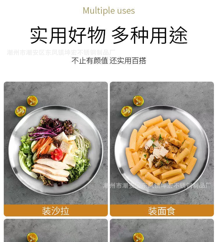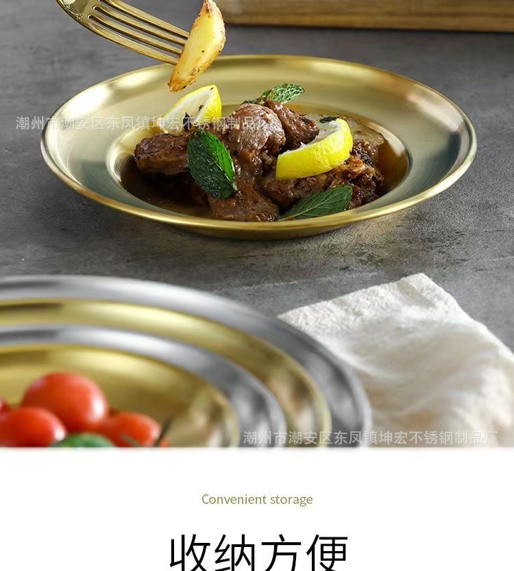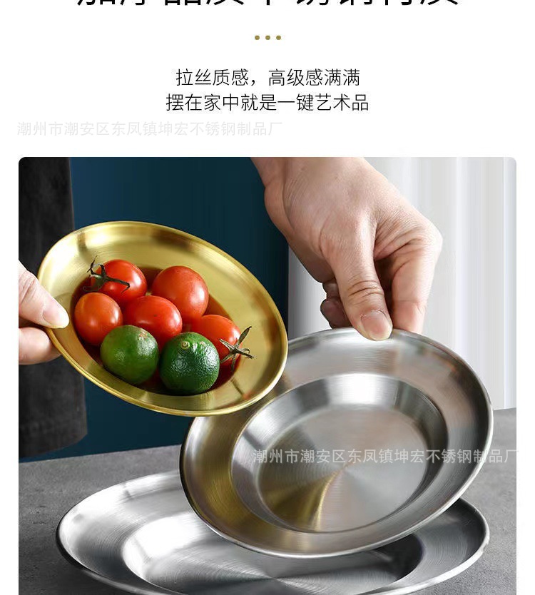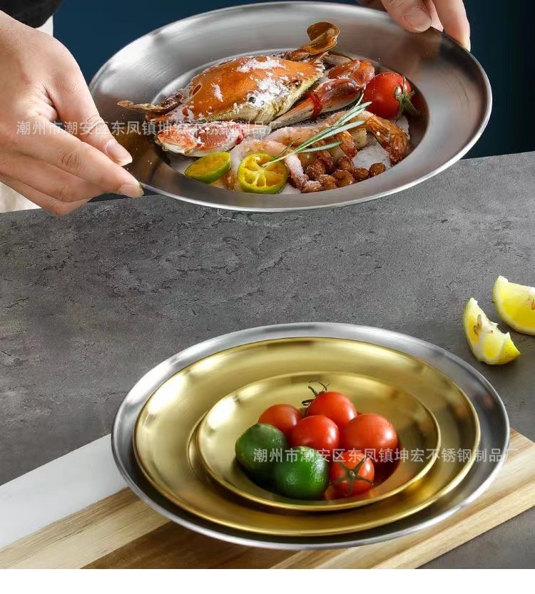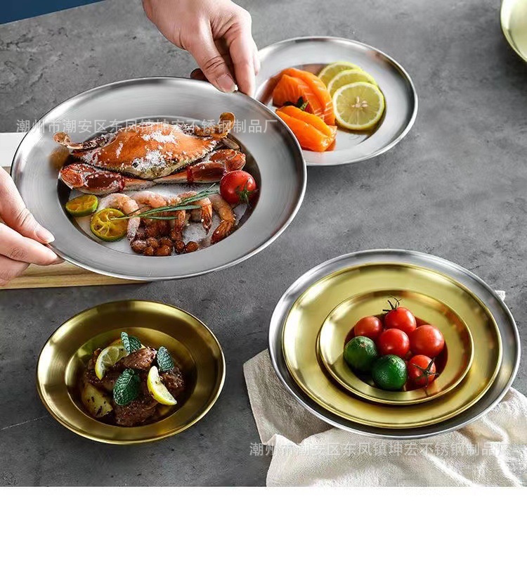 스테인레스 스틸 디스크 샐러드 접시 깊은 접시 파스타 접시 과일 접시 케이크 접시 뼈 접시 한국 디저트 접시 밀짚 모자 접시