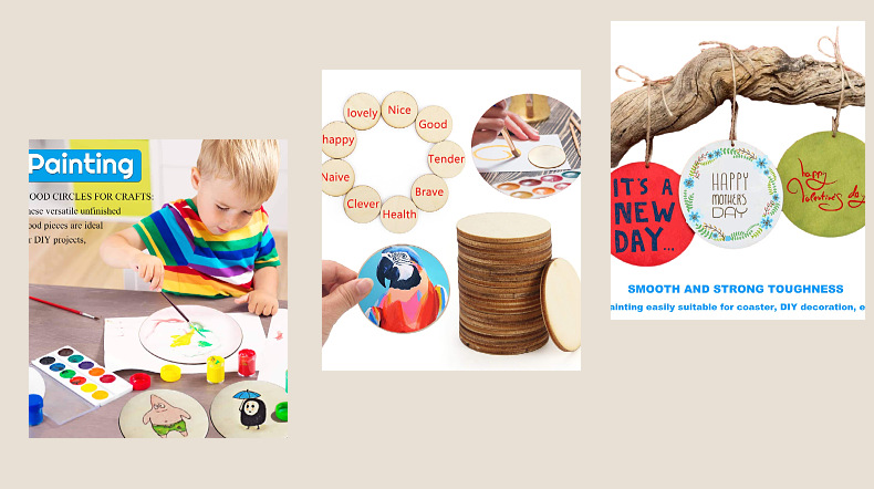 공장 도매 2cm DIY 나무 웨이퍼 레이저 절단 포플러 웨이퍼 어린이 수제 나무 웨이퍼 교구스토어 가기