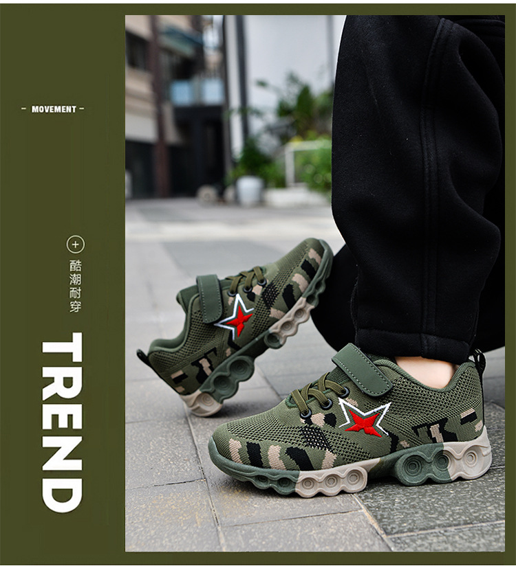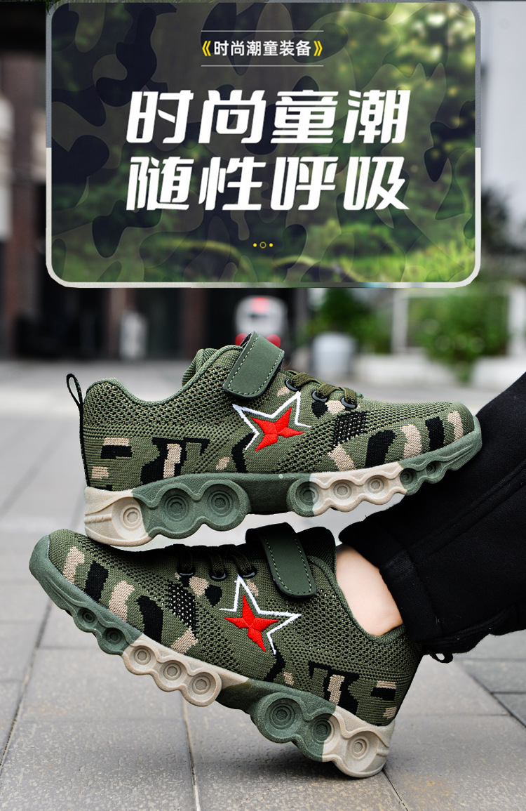 여름 캠프 어린이 군사 훈련 위장 활동 신발 소년 신발 봄 2023 새로운 이중 그물 통기성 학생 제조 업체