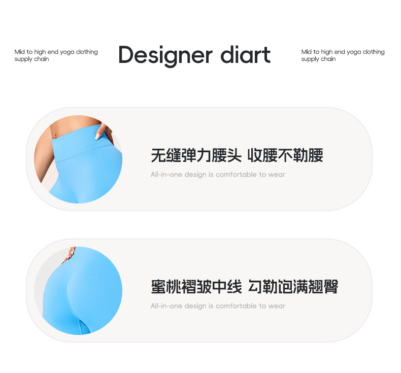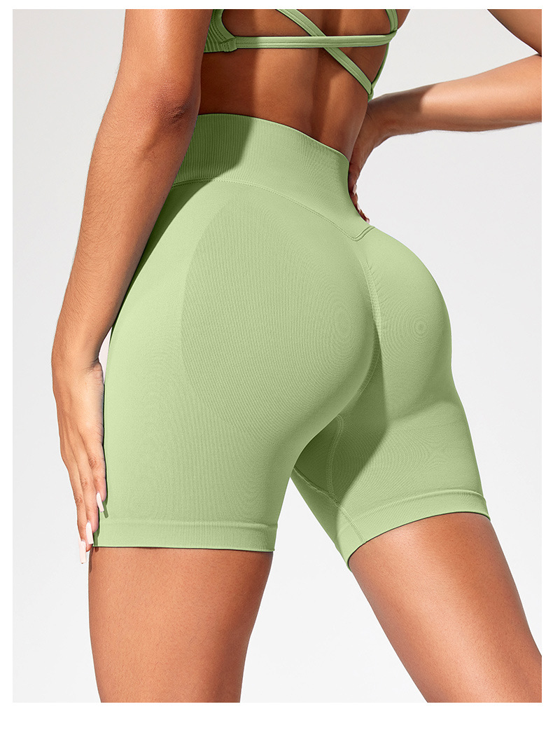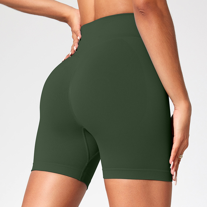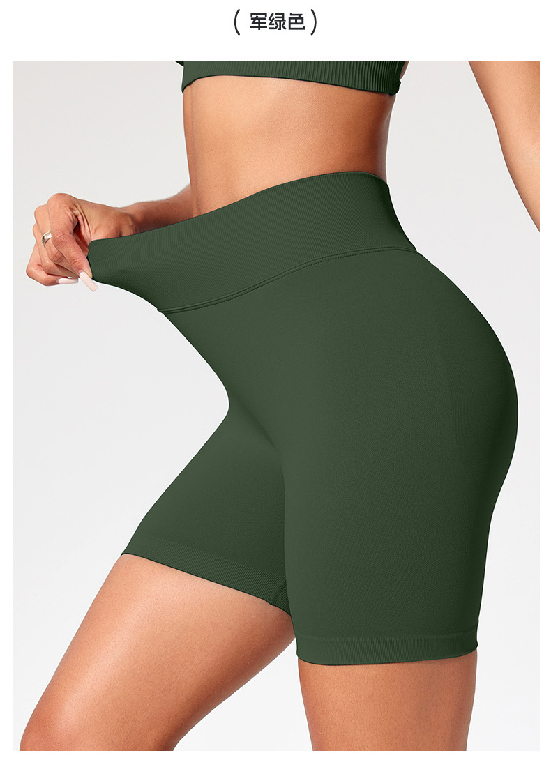 유럽과 미국의 높은 허리 피트니스, 원활한 복숭아 엉덩이 배 요가 바지 여성용 얇은 엉덩이 3 점 스포츠 반바지