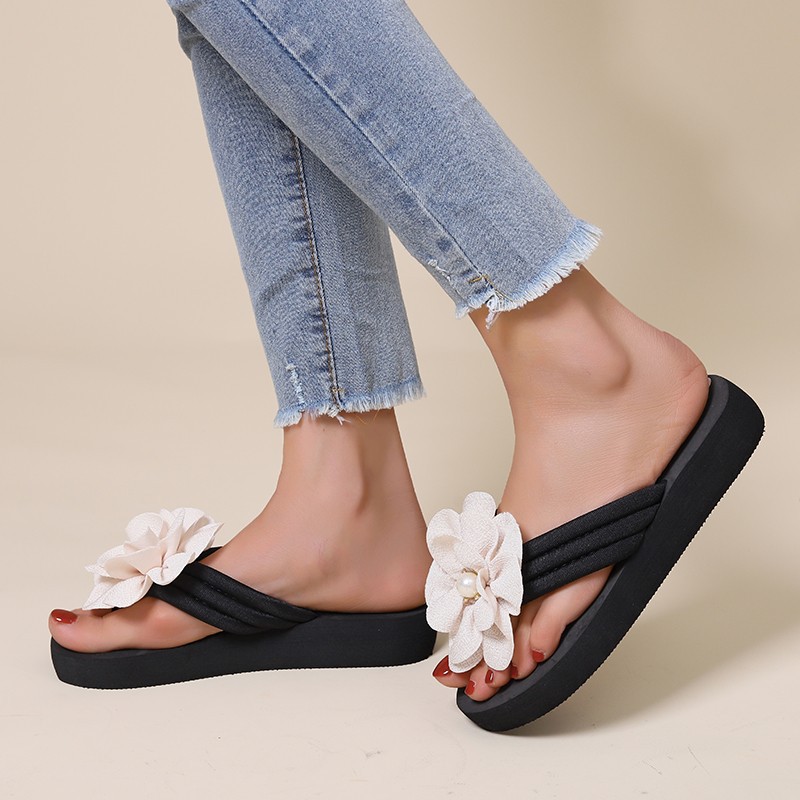 여성 샌들 새로운 여성 여름 아웃웨어 패션 슬리퍼 플립 온 발 스탠드 신발 여성 학생 한국 스타일 꽃 여성 신발