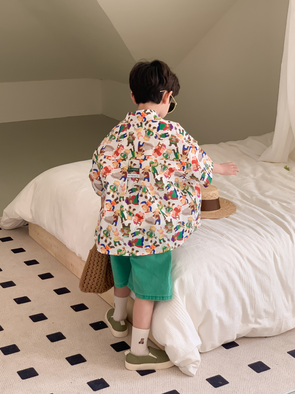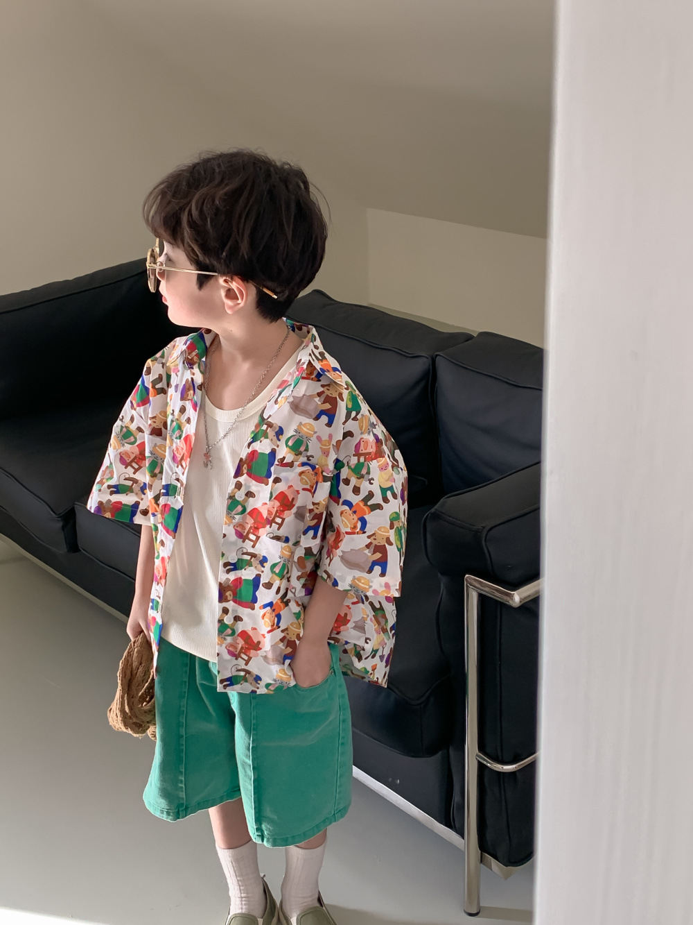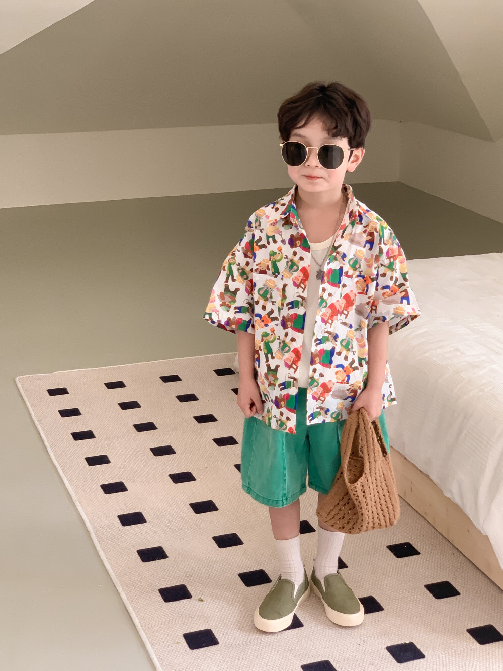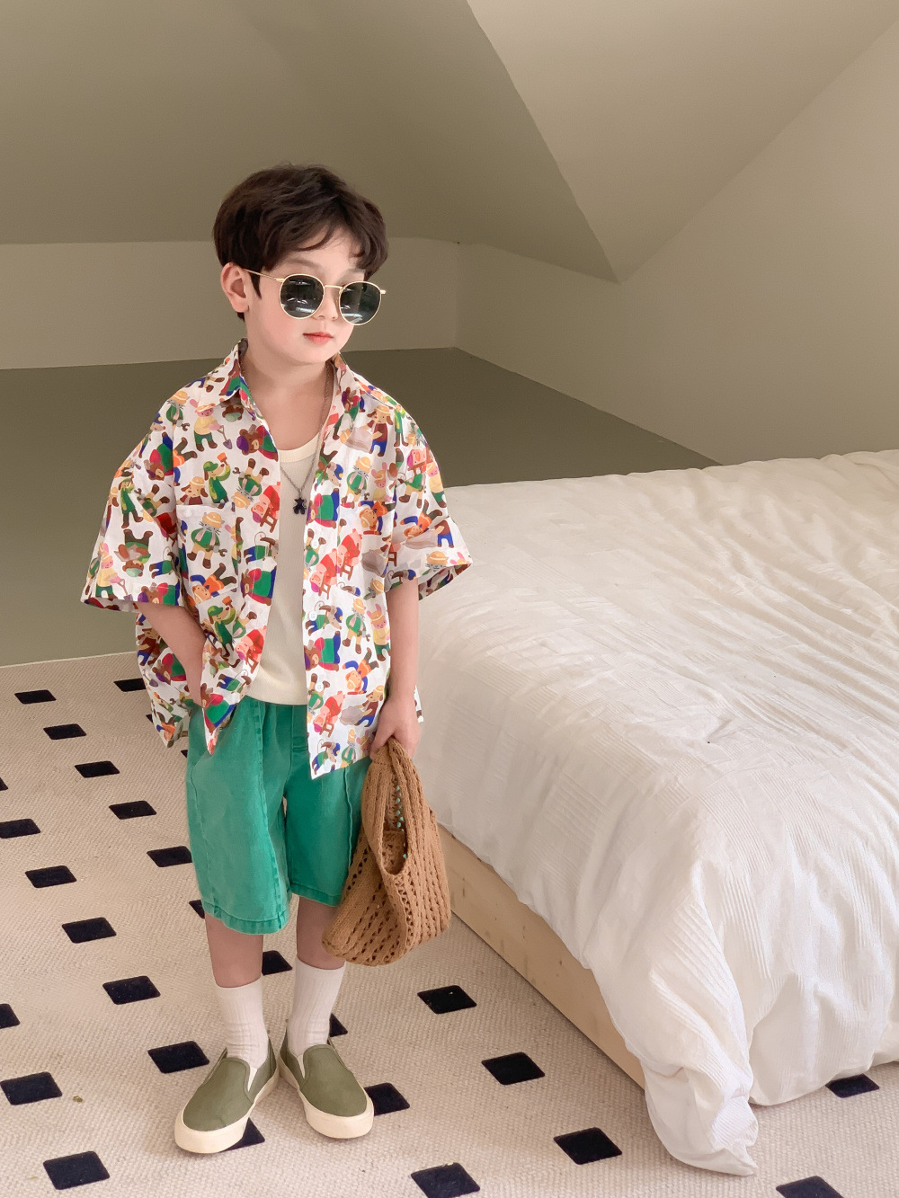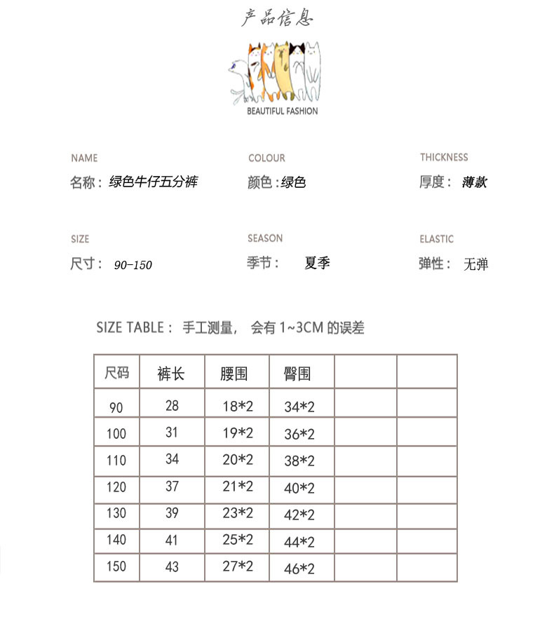 어린이 바지 2025 여름 소년 한국식 녹색 데님 바지 어린이 느슨한 캐주얼 중간 바지스토어 가기
