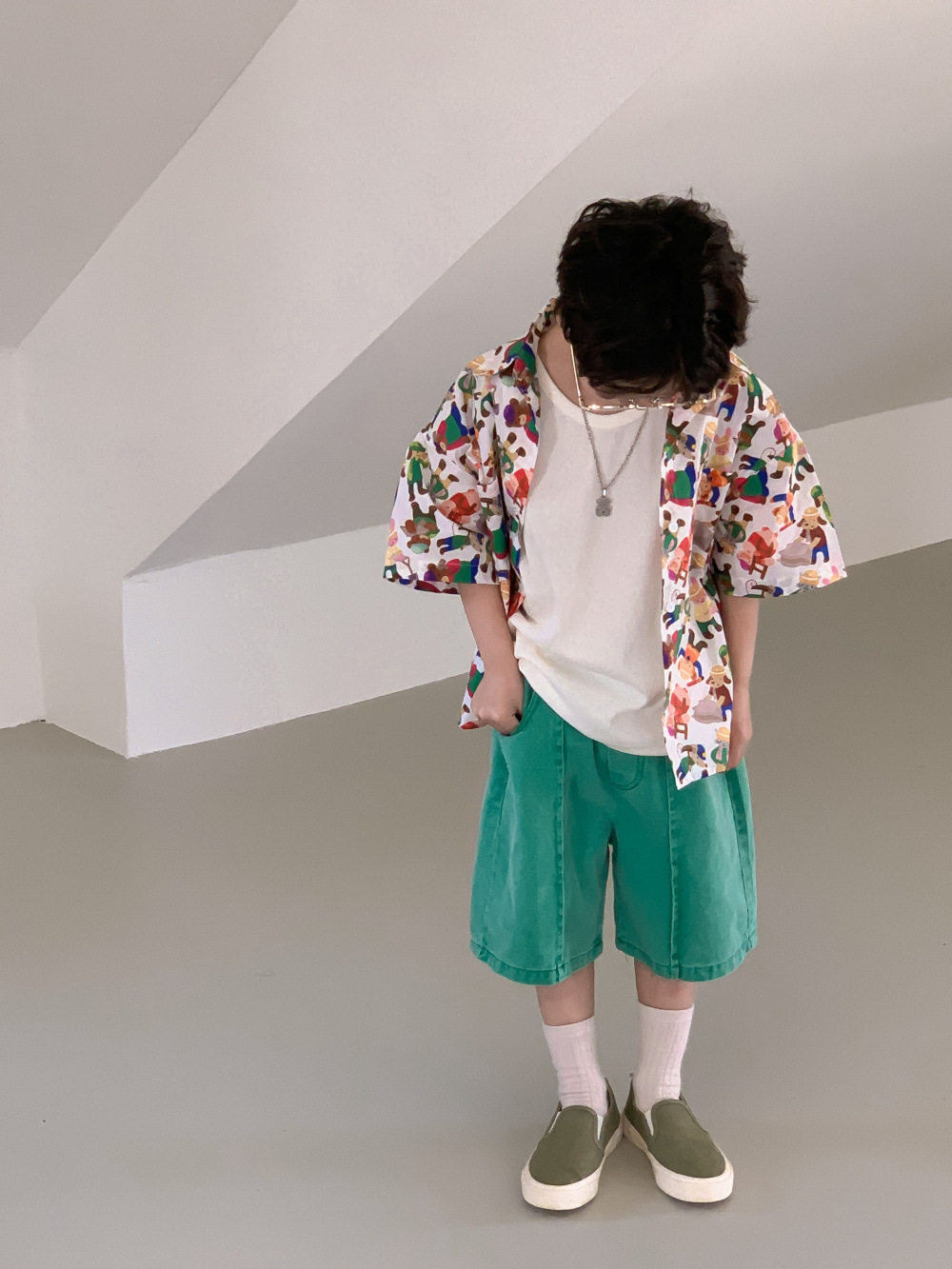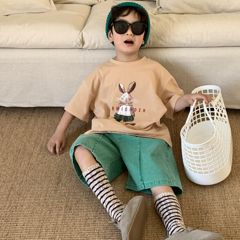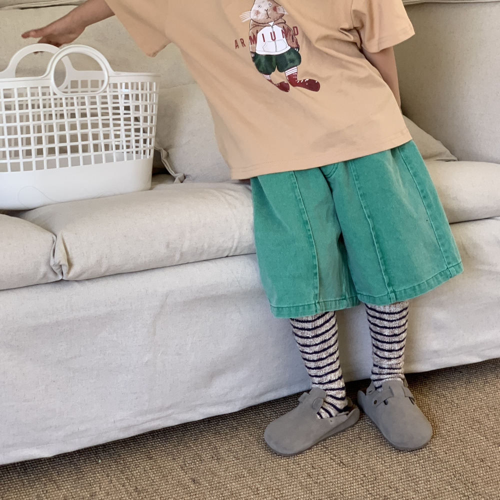 어린이 바지 2025 여름 소년 한국식 녹색 데님 바지 어린이 느슨한 캐주얼 중간 바지