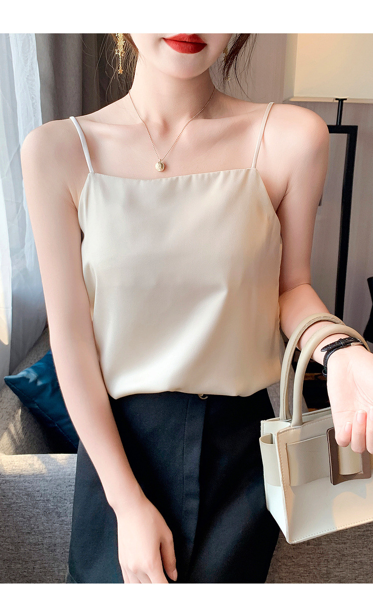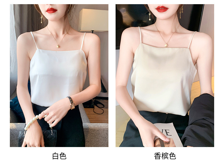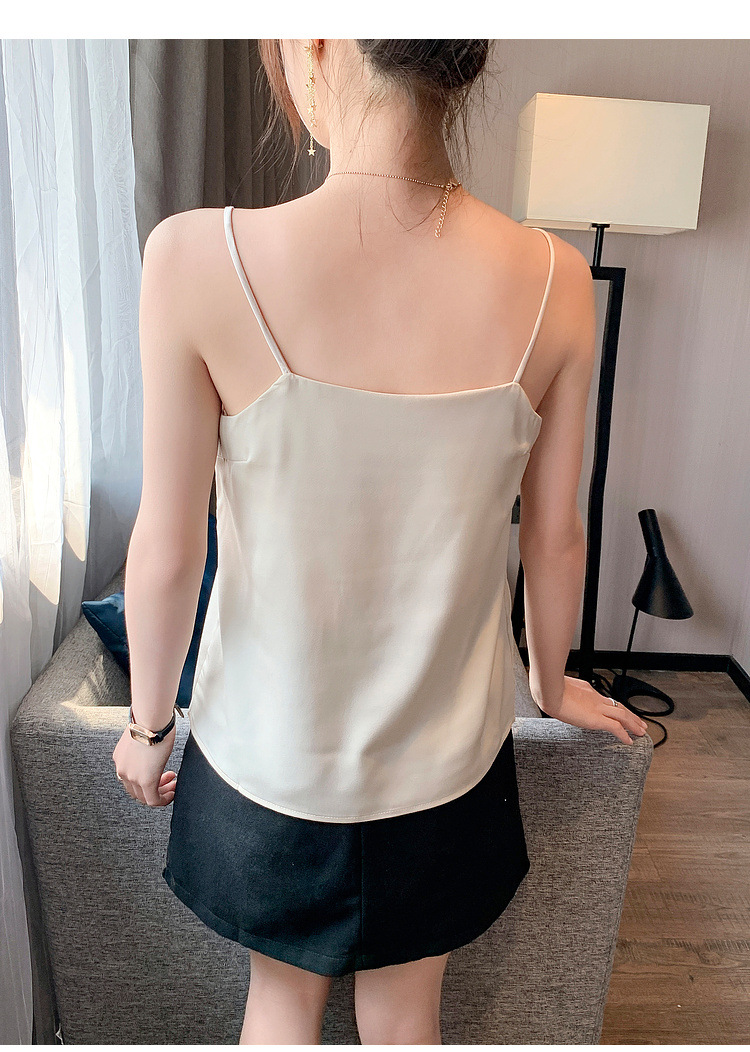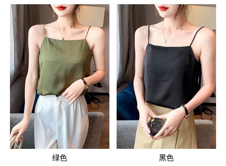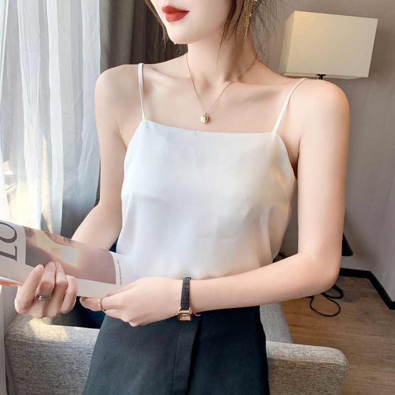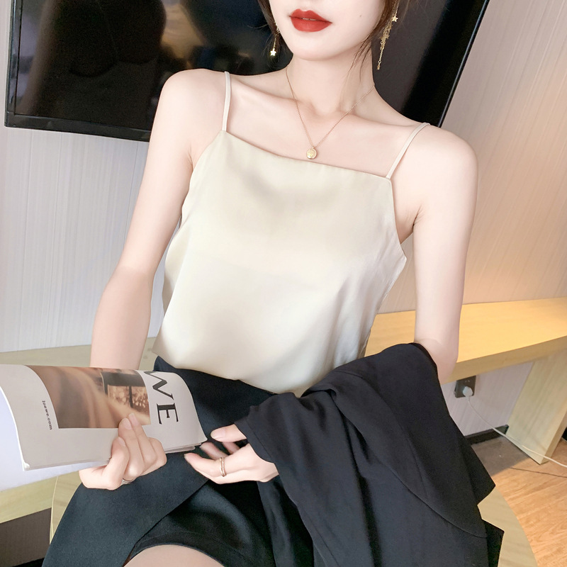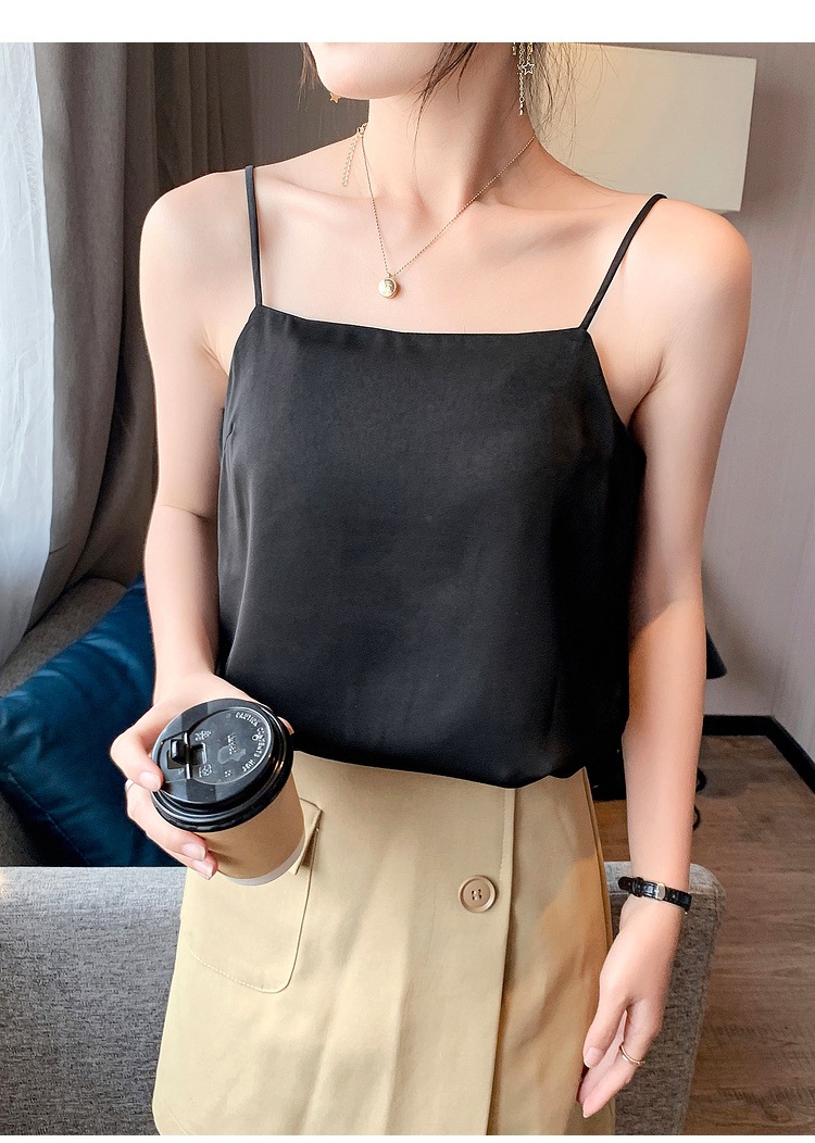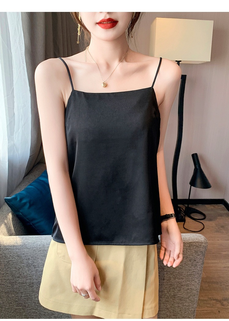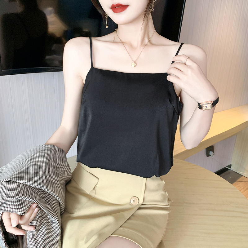 캐미솔 고급 블랙 실크 여름 새틴 고급 우아한 겉옷 내부 탑