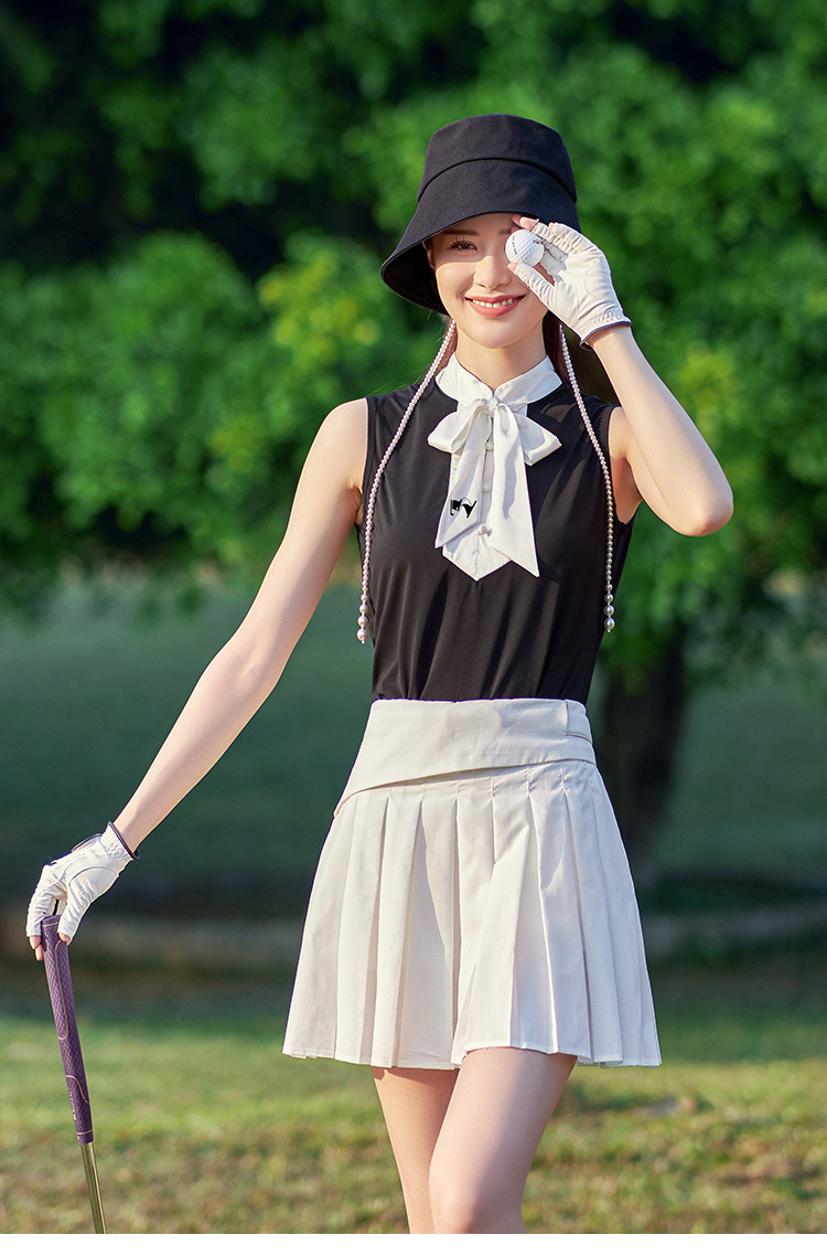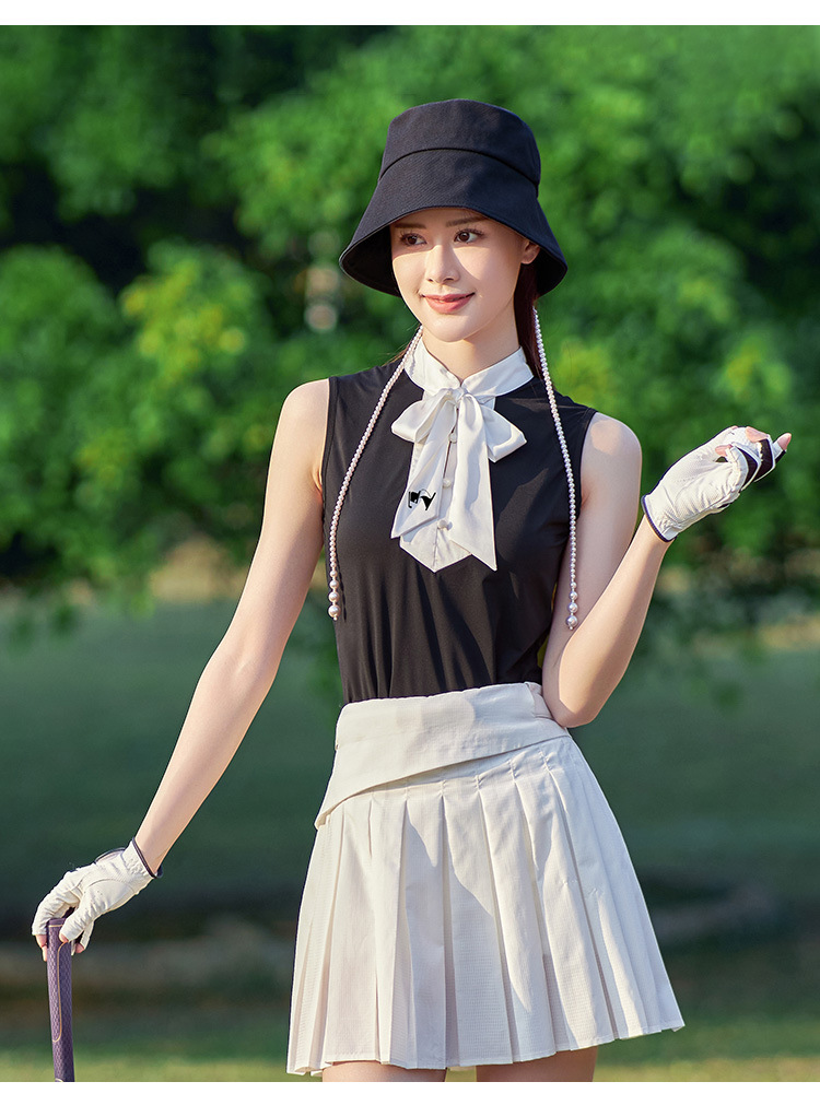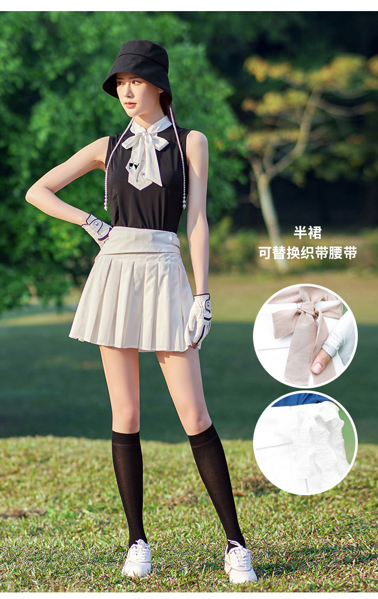 MY 골프 의류 여성 한국 슬림 민소매 티셔츠 탑 플리츠 테니스 스커트 슬림핏 볼 세트 세트스토어 가기