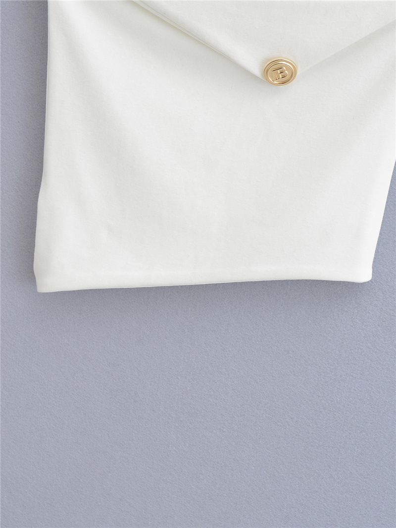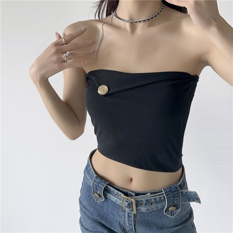 핫 걸 섹시 플랜지 버클 솔리드 컬러 튜브 탑 여름 새로운 디자인 센스 슬림핏 여성용 숏베이스 조끼