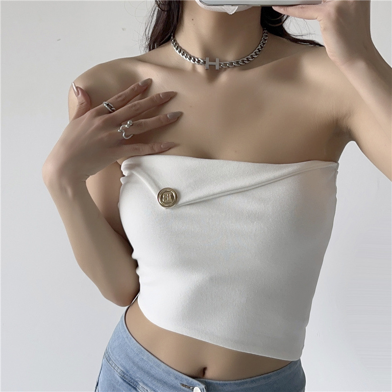 핫 걸 섹시 플랜지 버클 솔리드 컬러 튜브 탑 여름 새로운 디자인 센스 슬림핏 여성용 숏베이스 조끼스토어 가기