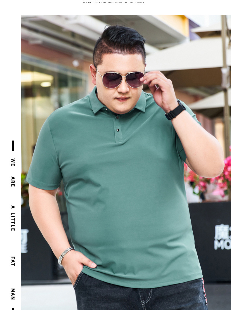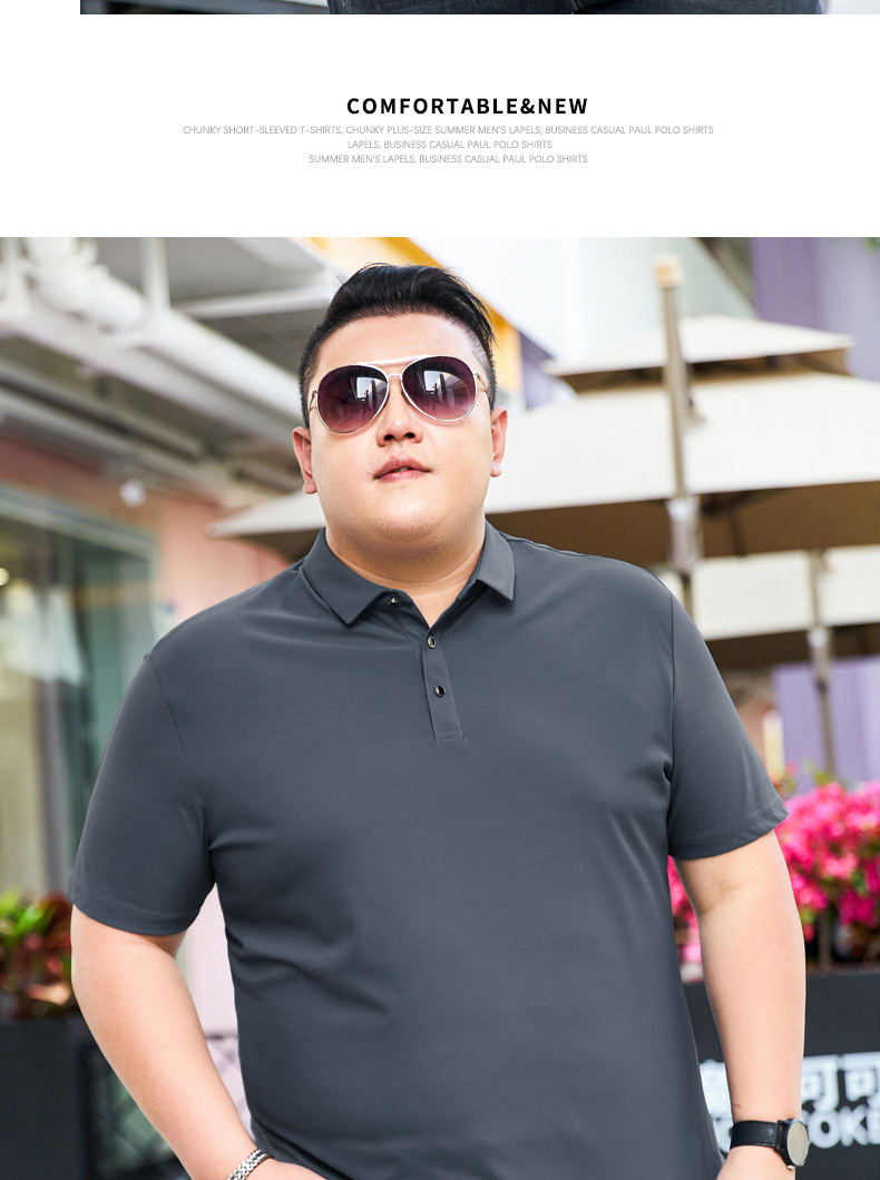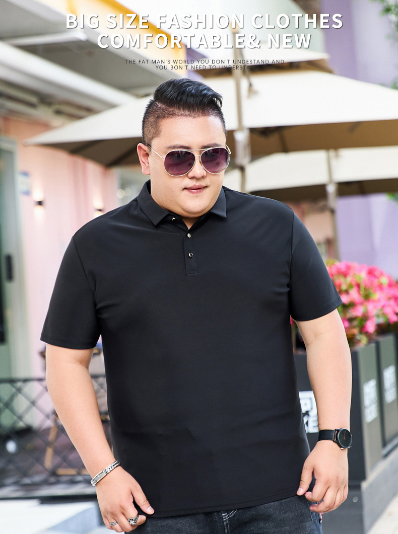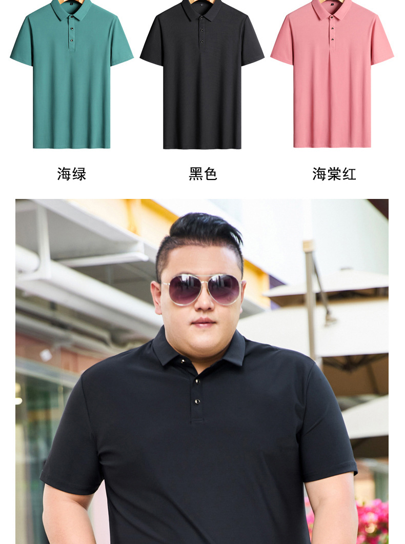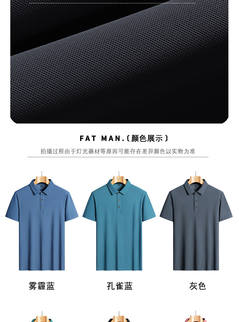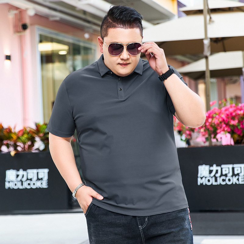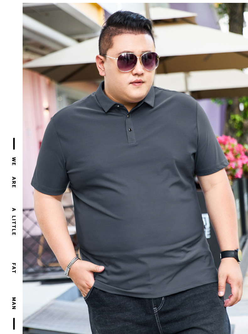 여름 아이스 실크 뚱뚱한 남자의 반팔 티셔츠 남자의 옷깃 뚱뚱한 플러스 사이즈 폴로 셔츠 뚱뚱한 남자의 초대형 느슨한 반팔 티셔츠