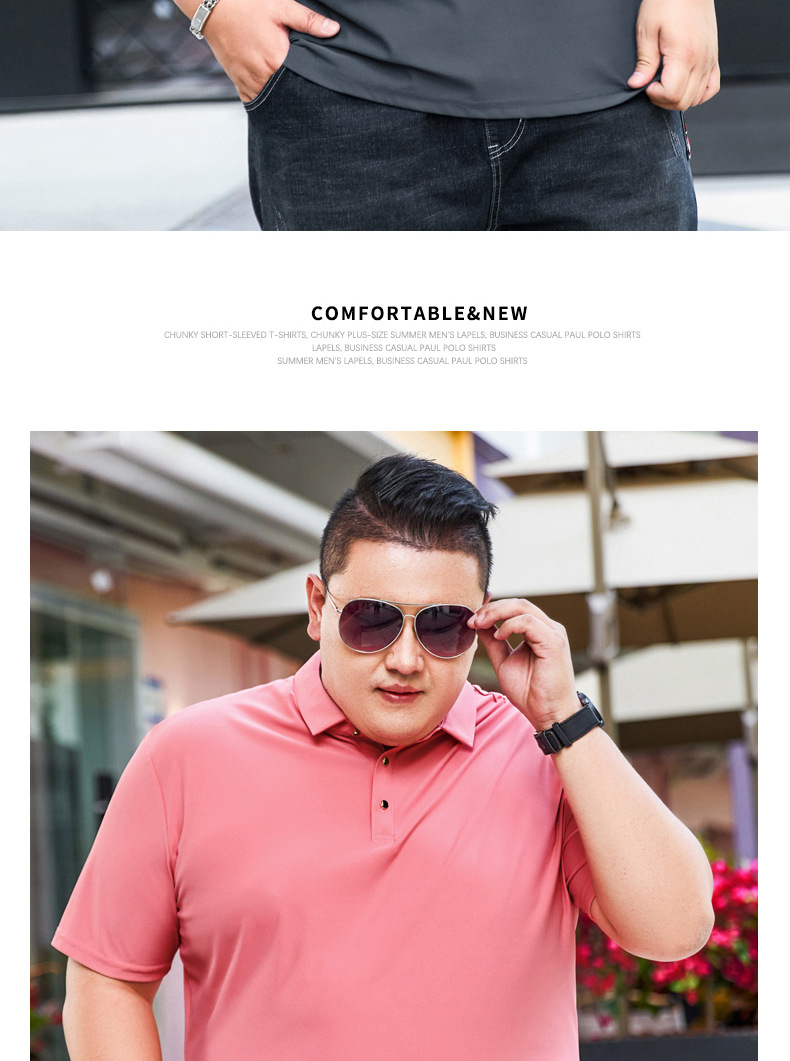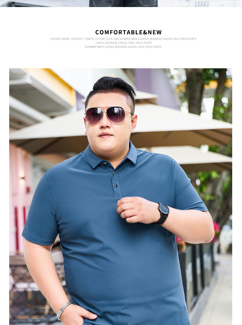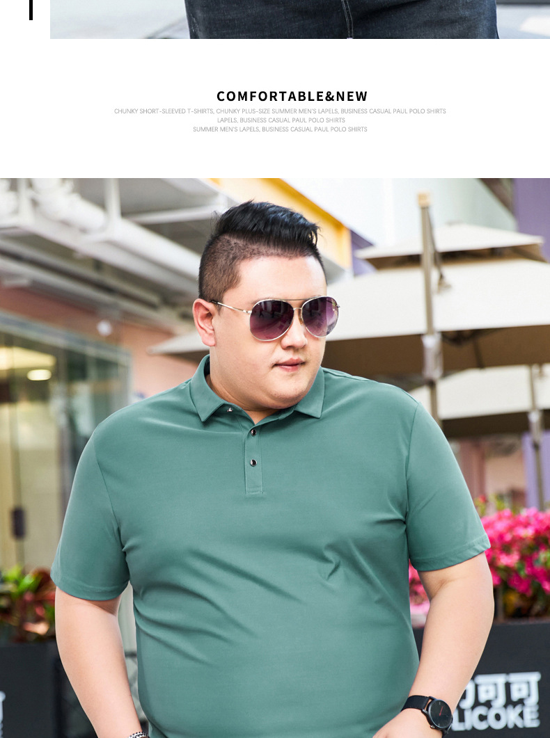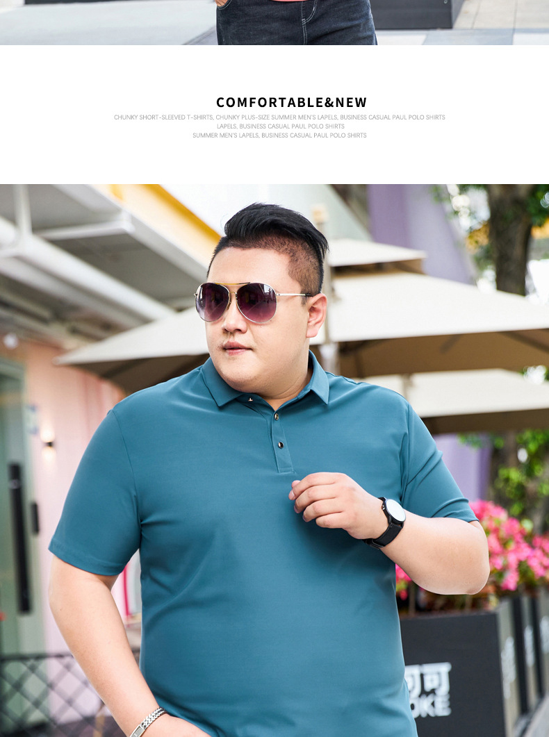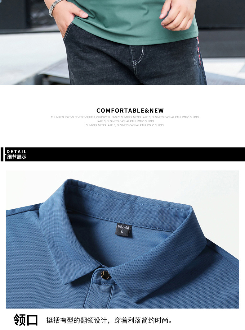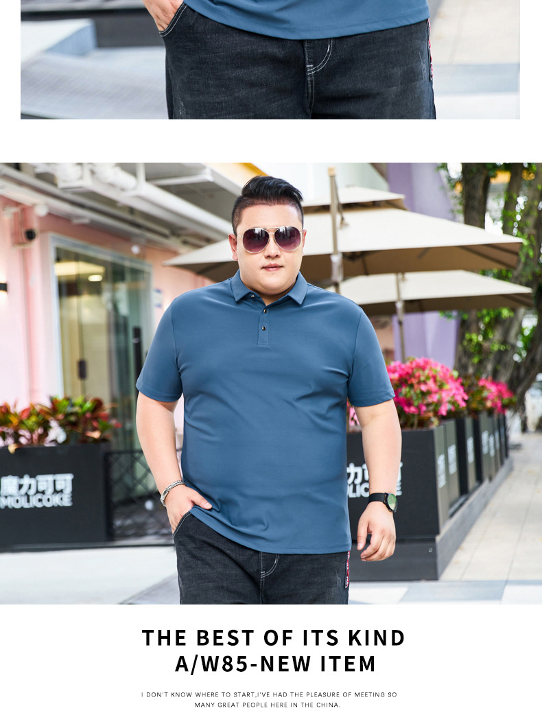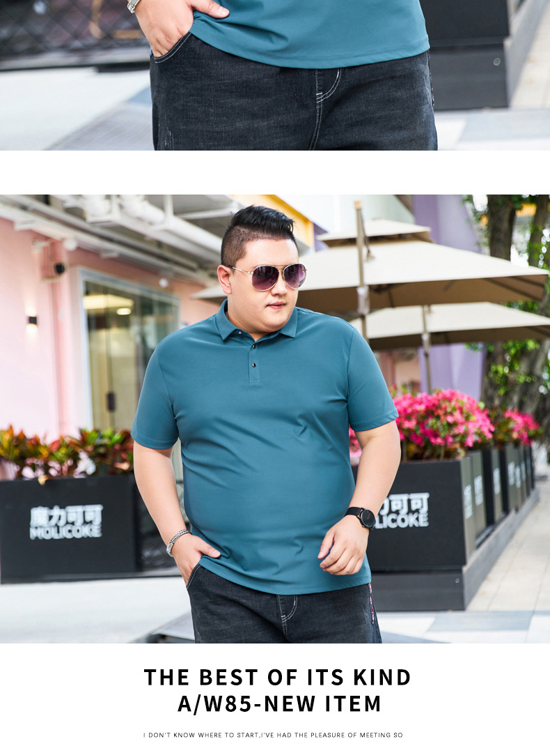 여름 아이스 실크 뚱뚱한 남자의 반팔 티셔츠 남자의 옷깃 뚱뚱한 플러스 사이즈 폴로 셔츠 뚱뚱한 남자의 초대형 느슨한 반팔 티셔츠