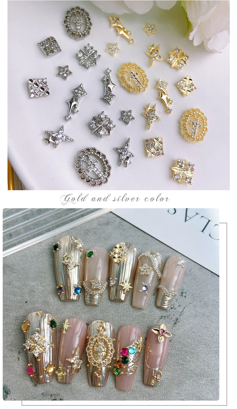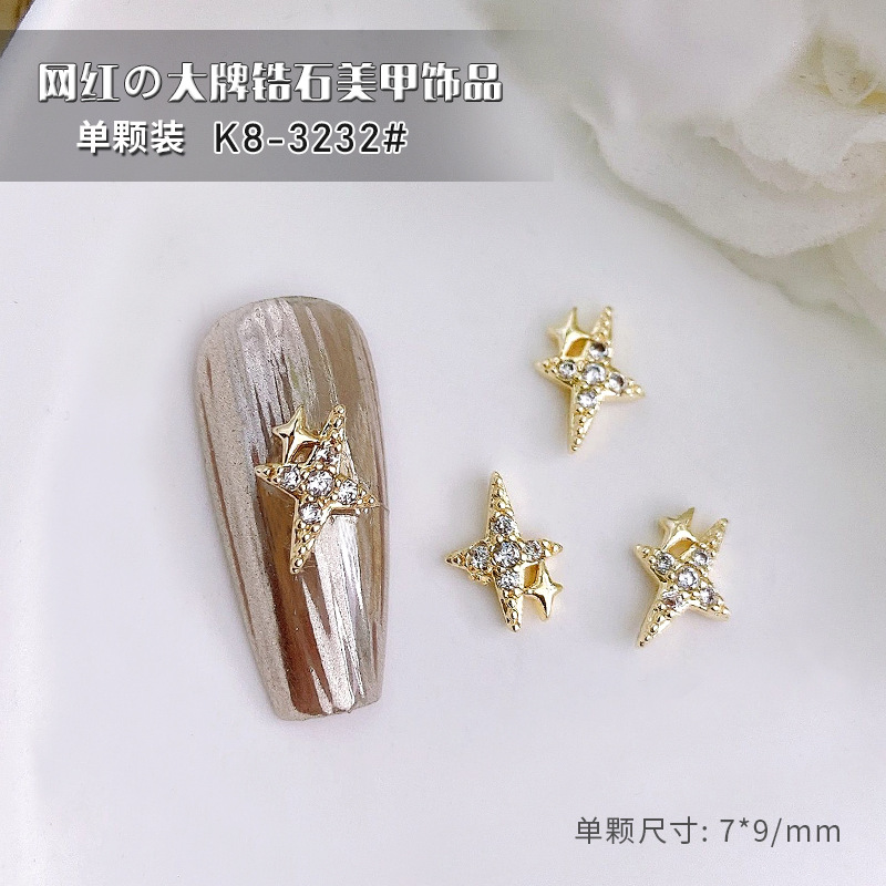 인터넷 연예인 폭발성 부켈라티 매니큐어 지르콘 쥬얼리 스타 네 잎 금속 네일 스티커 중공 매니큐어 다이아몬드 액세서리