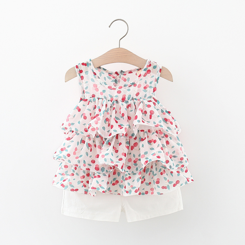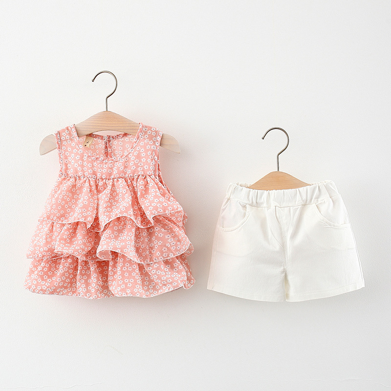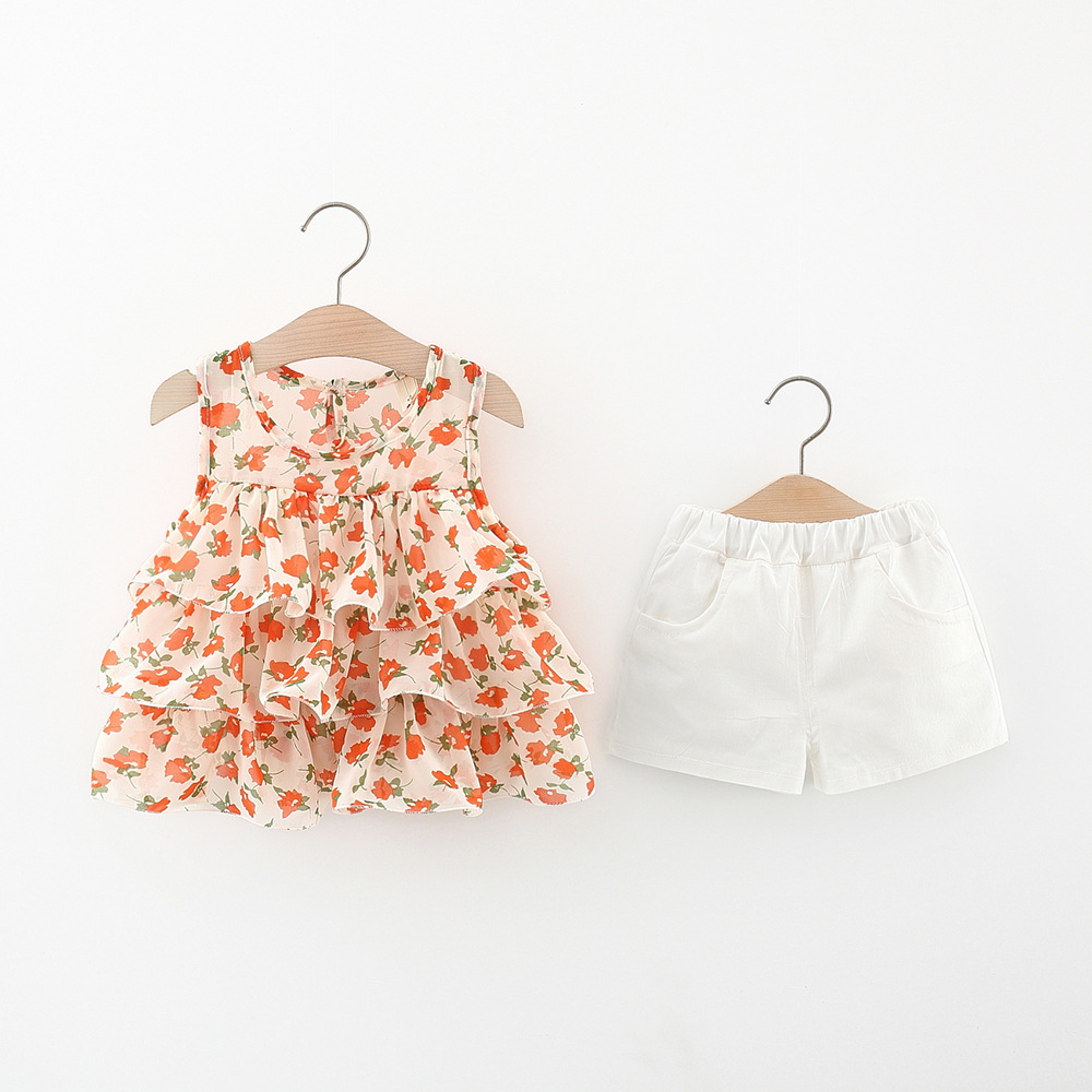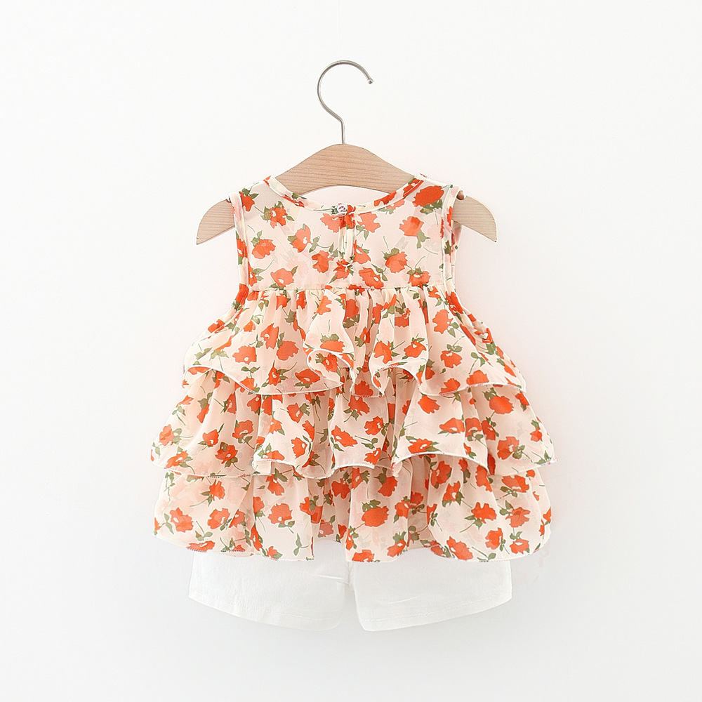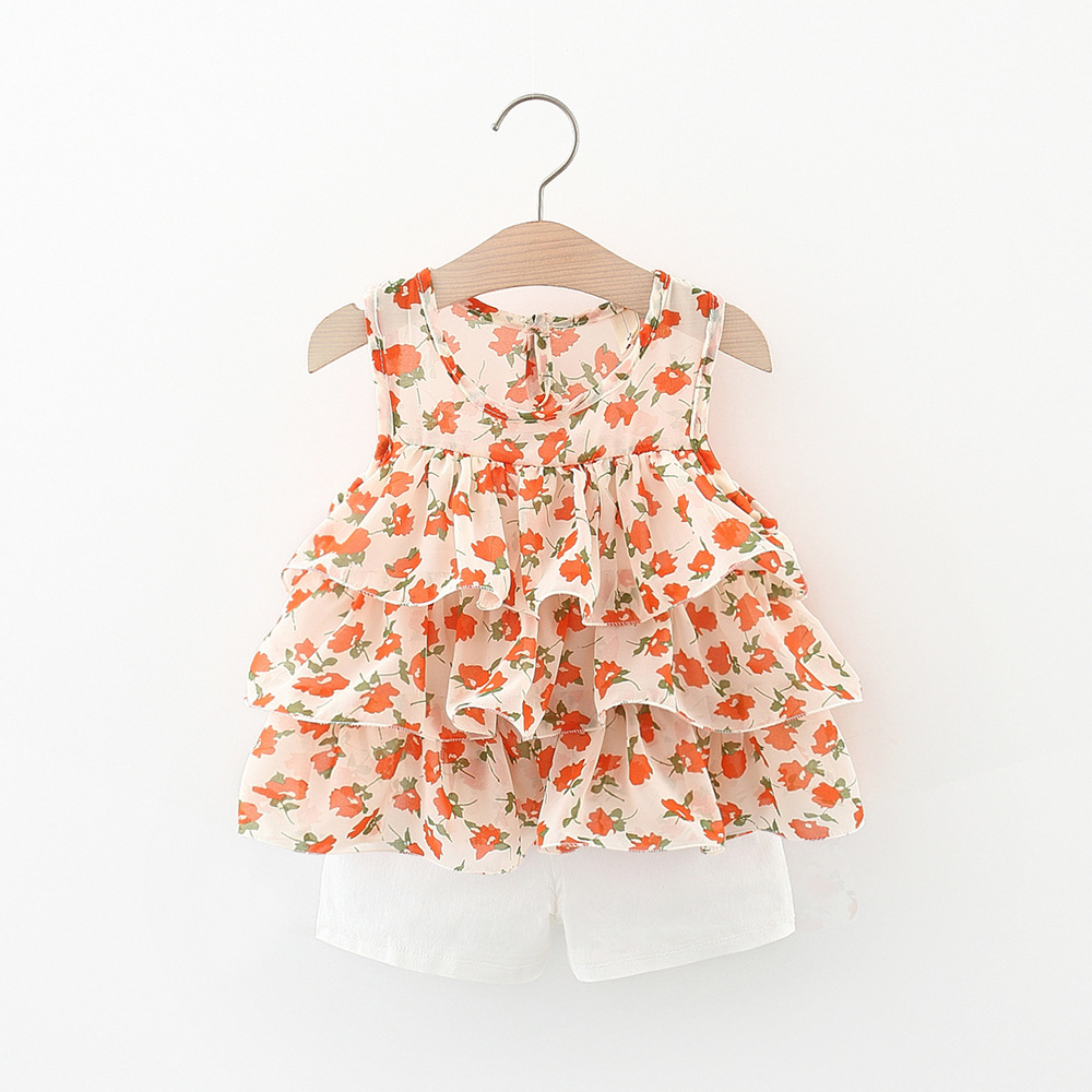 어린이 세련된 세트 여름 한국 스타일 여아 쉬폰 조끼 세트 0-23 세 여아 반바지 투피스 세트스토어 가기