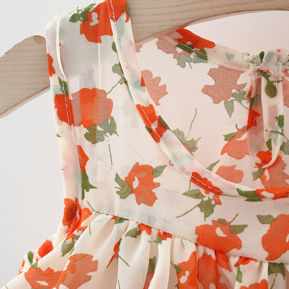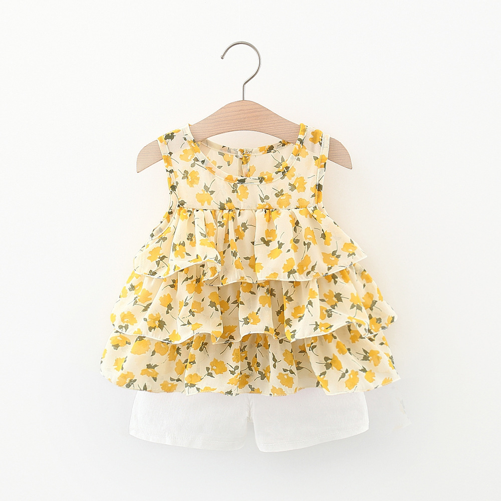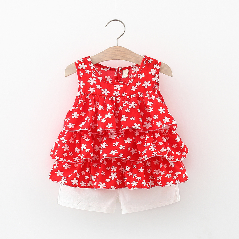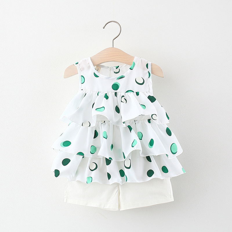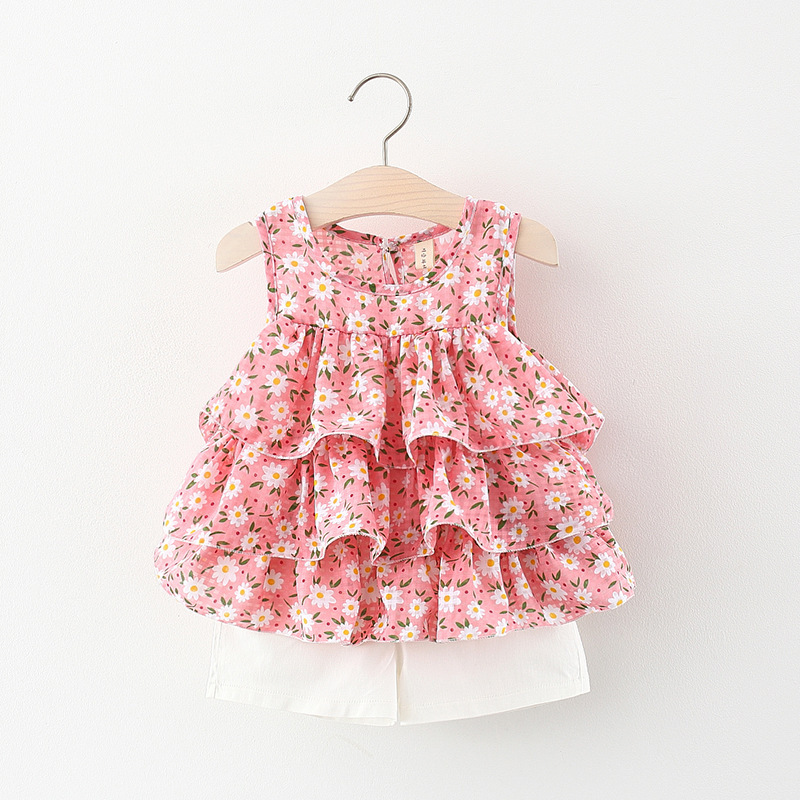 어린이 세련된 세트 여름 한국 스타일 여아 쉬폰 조끼 세트 0-23 세 여아 반바지 투피스 세트스토어 가기