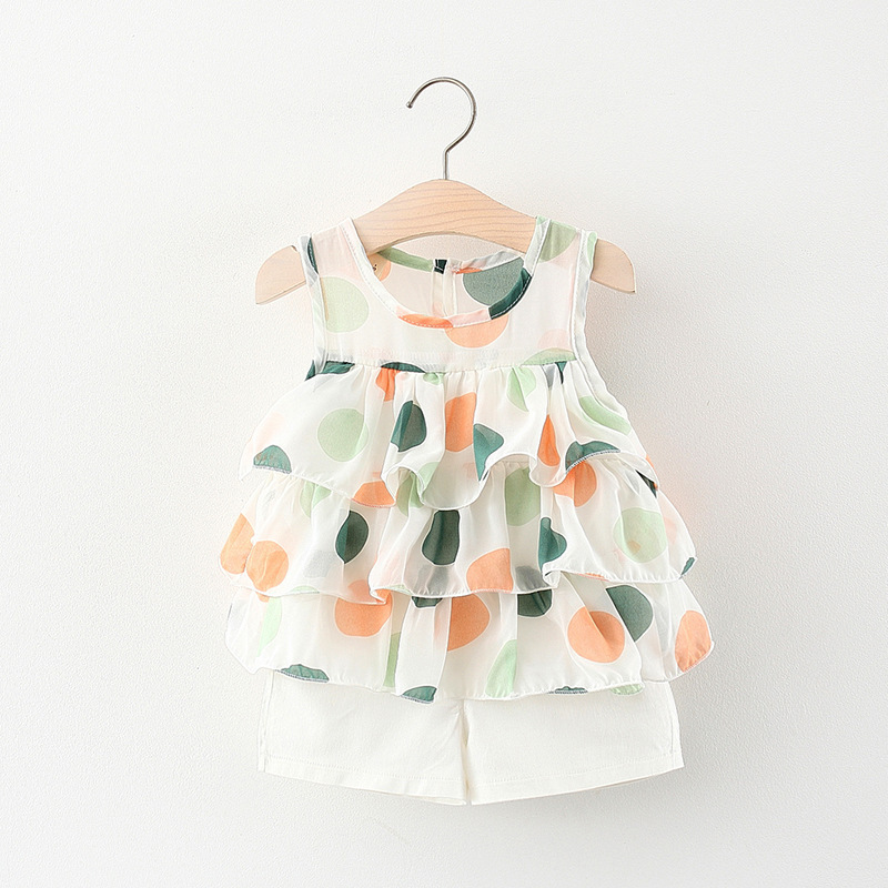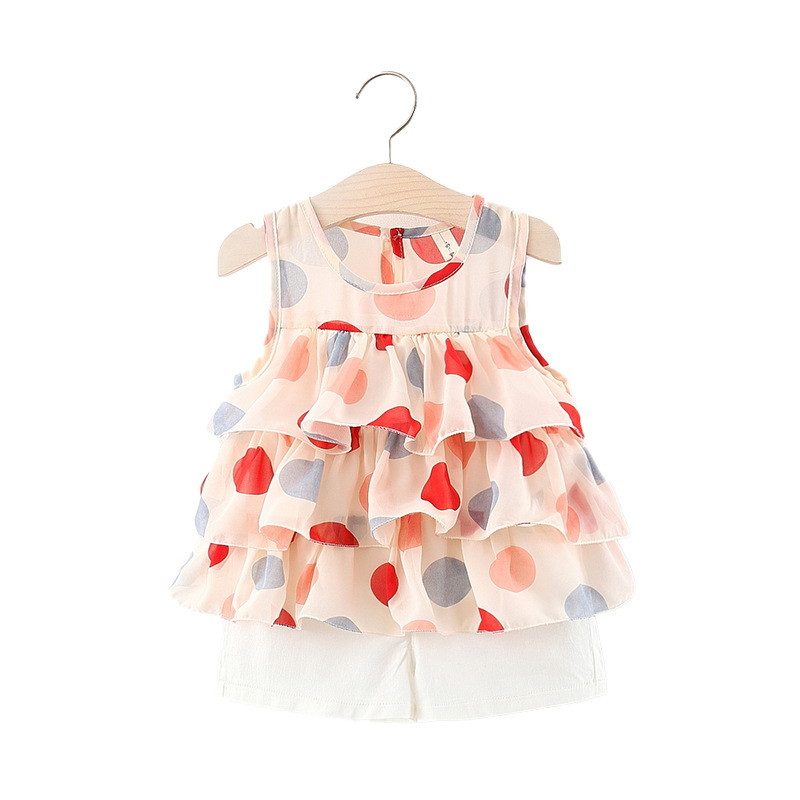 어린이 세련된 세트 여름 한국 스타일 여아 쉬폰 조끼 세트 0-23 세 여아 반바지 투피스 세트