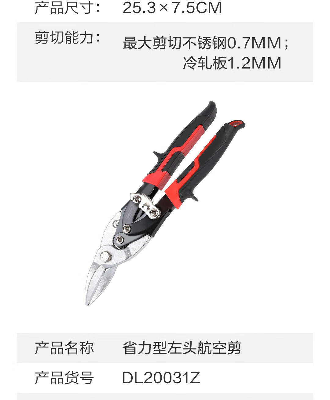 • DL20031Z에 대하여 노동 절약형 왼쪽 헤드 항공 가위 크롬 몰리브덴 강철(빨간색)*65 망간*250