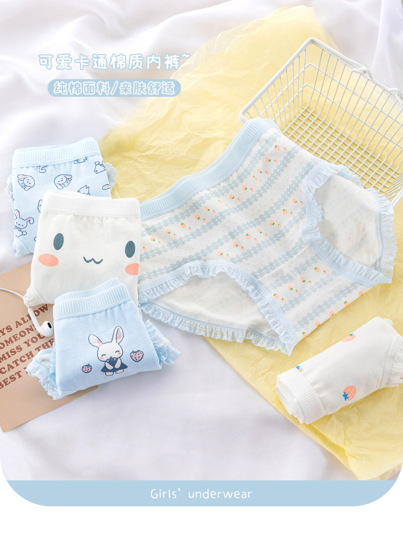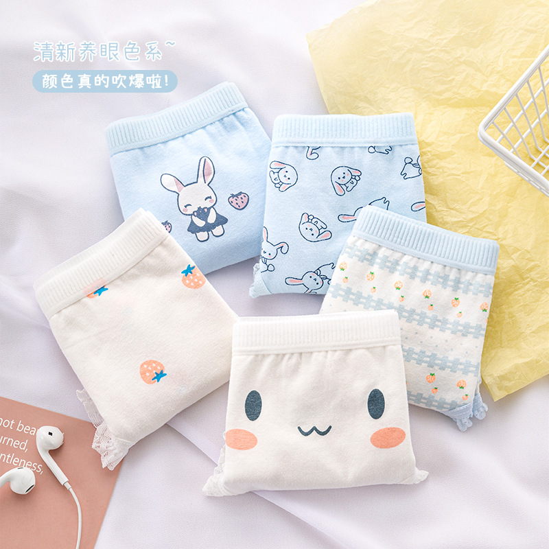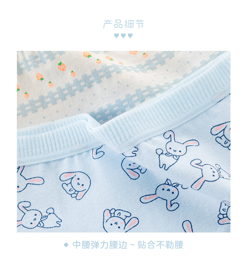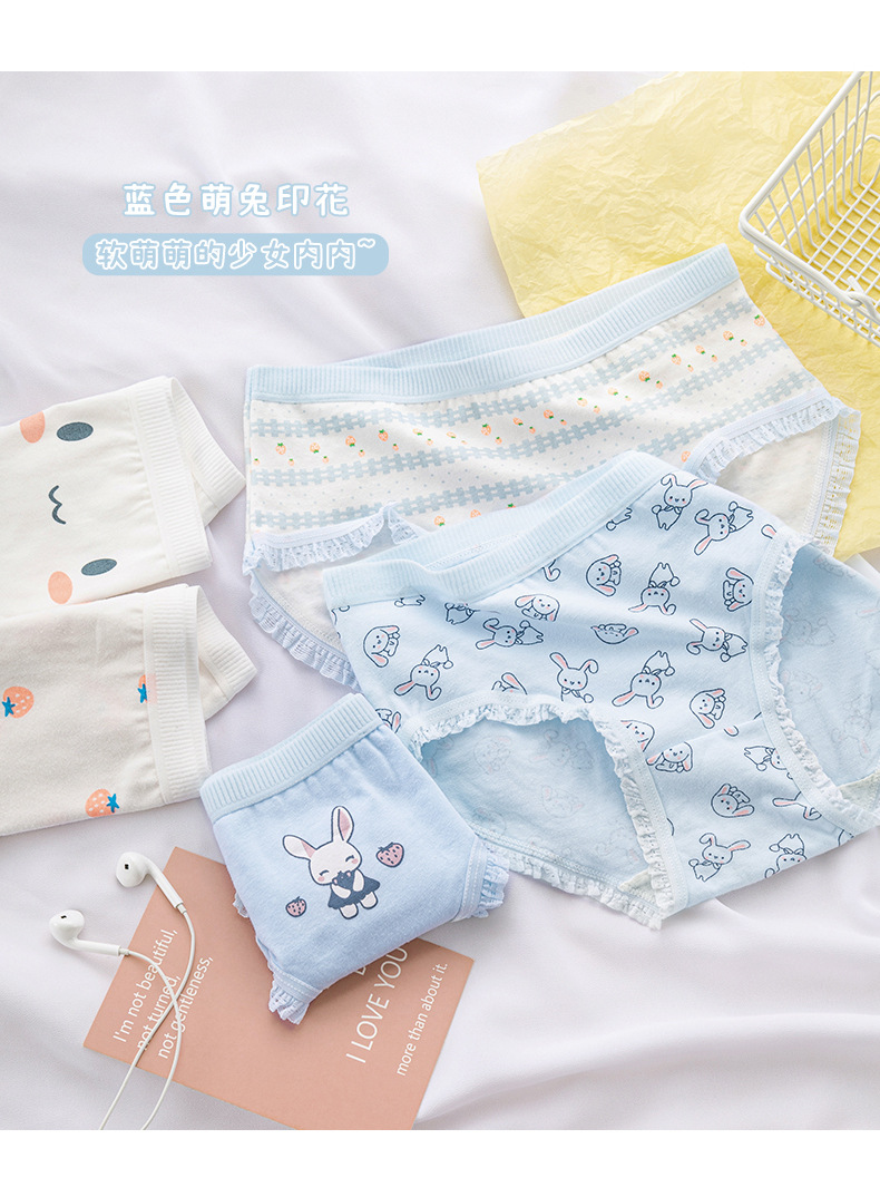 일본식 심플 클라우드 워터 블루 딸기 귀여운 토끼 소녀 속옷 여성용 면 가랑이 미드 웨이스트 중학교 학생 팬티스토어 가기