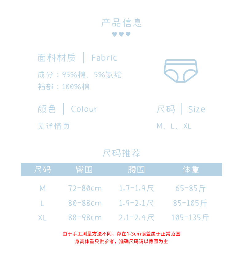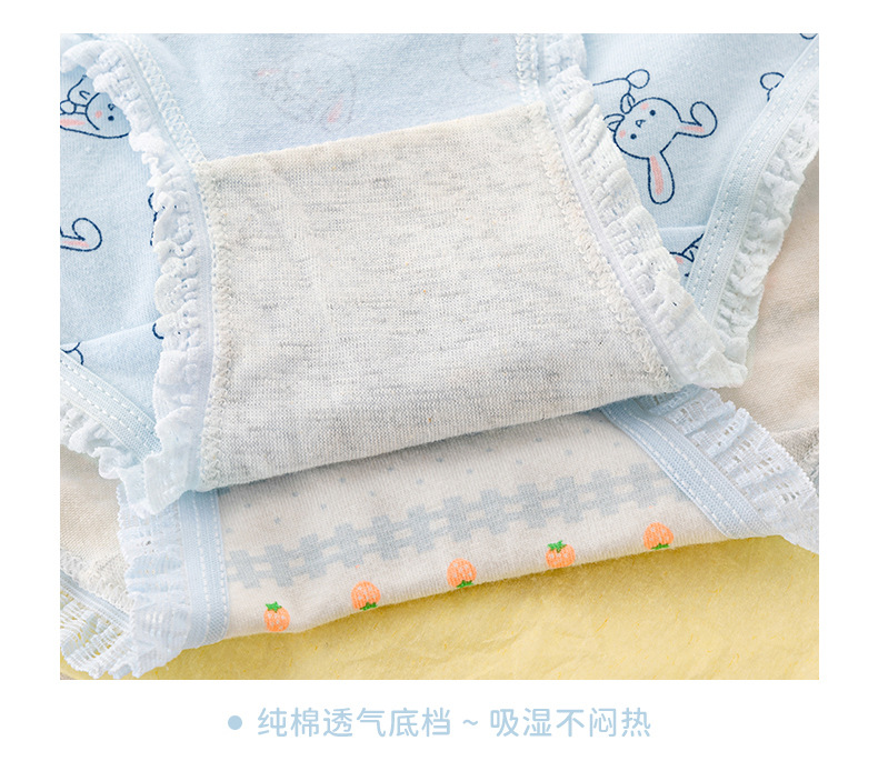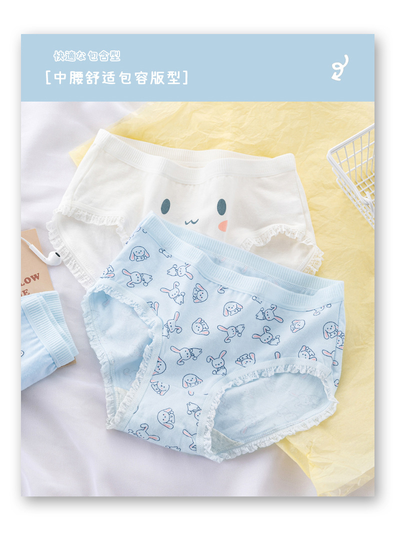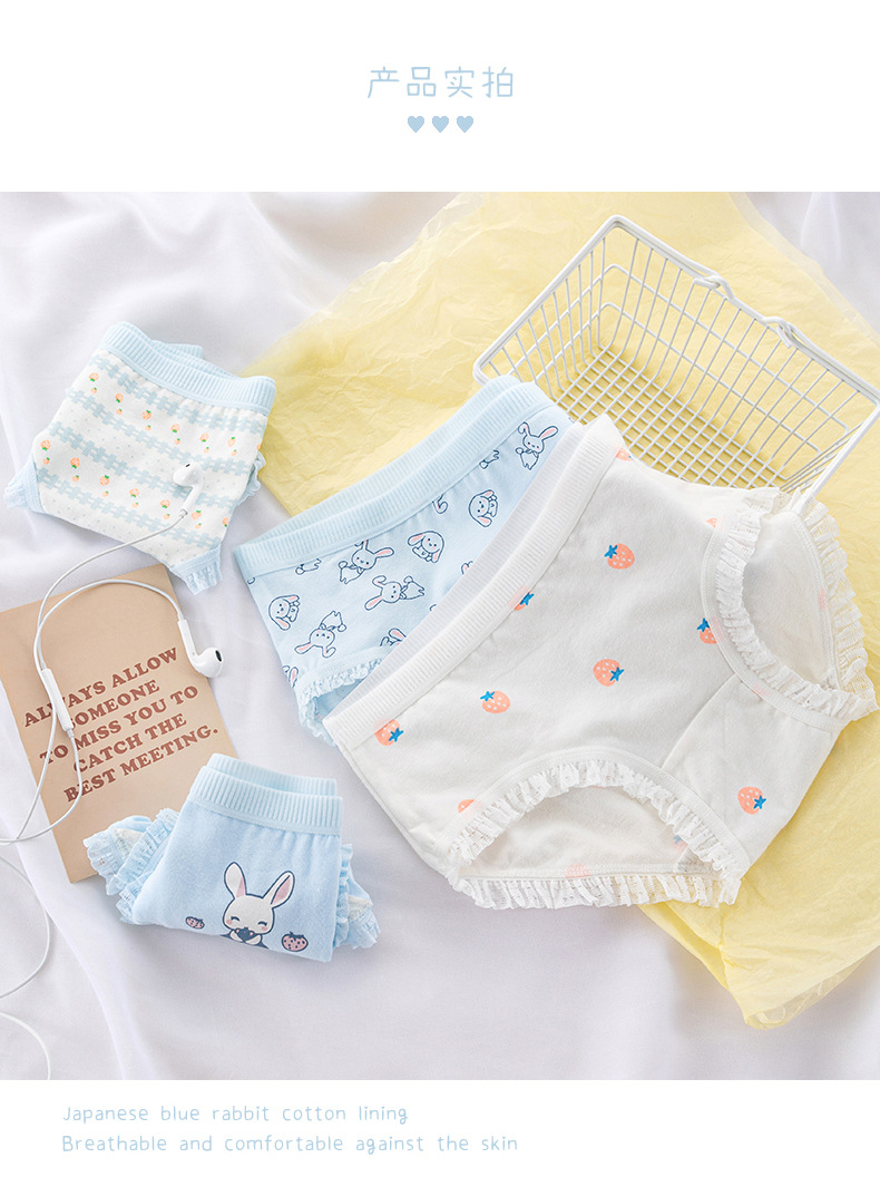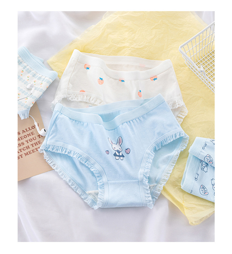 일본식 심플 클라우드 워터 블루 딸기 귀여운 토끼 소녀 속옷 여성용 면 가랑이 미드 웨이스트 중학교 학생 팬티스토어 가기