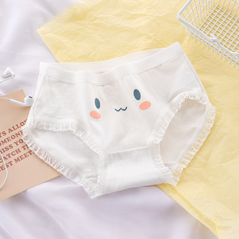 일본식 심플 클라우드 워터 블루 딸기 귀여운 토끼 소녀 속옷 여성용 면 가랑이 미드 웨이스트 중학교 학생 팬티