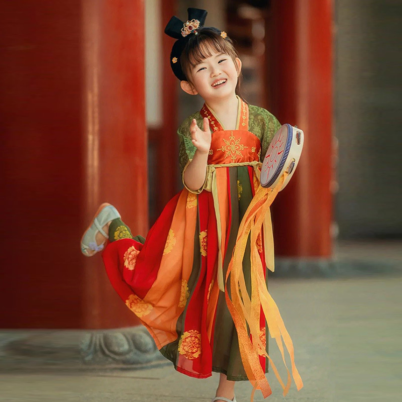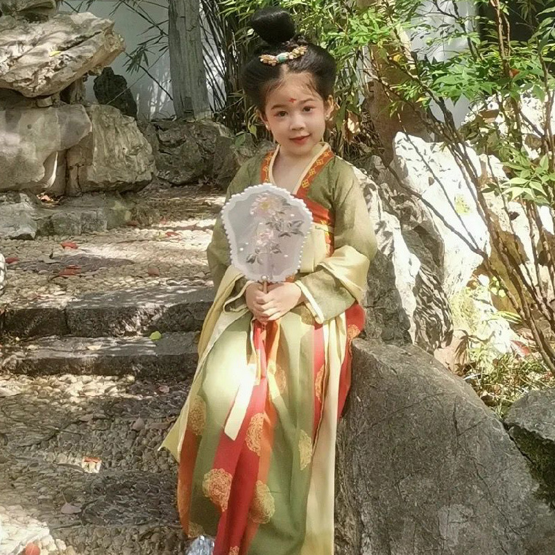 汉服女童儿童古装中国风超仙唐装古风公主女孩春秋连衣裙2023新款