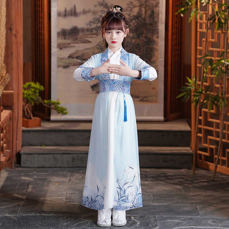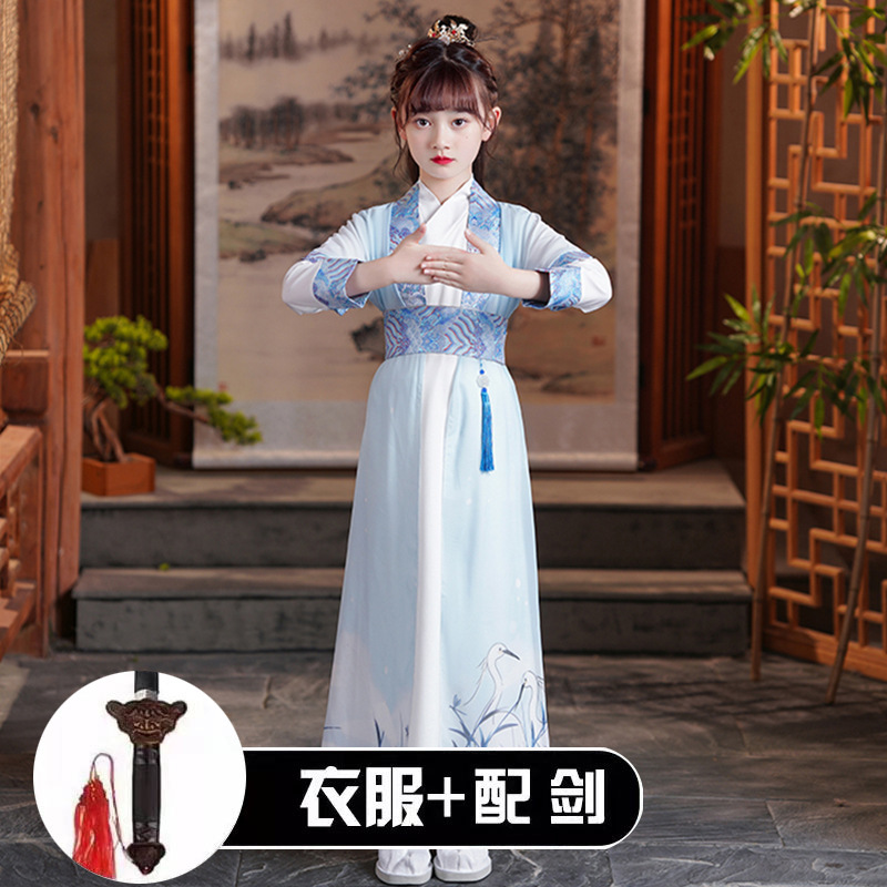 Hanfu 소년과 어린이의 3 자 수트라 공연 의류 여아 새로운 스타일 아기 탕 세트 작은 책 어린이 고대 의류 Guoxue 의류스토어 가기