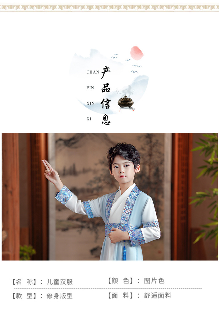 汉服男童小孩三字经演出服女童新款宝宝唐装小书童儿童古装国学服