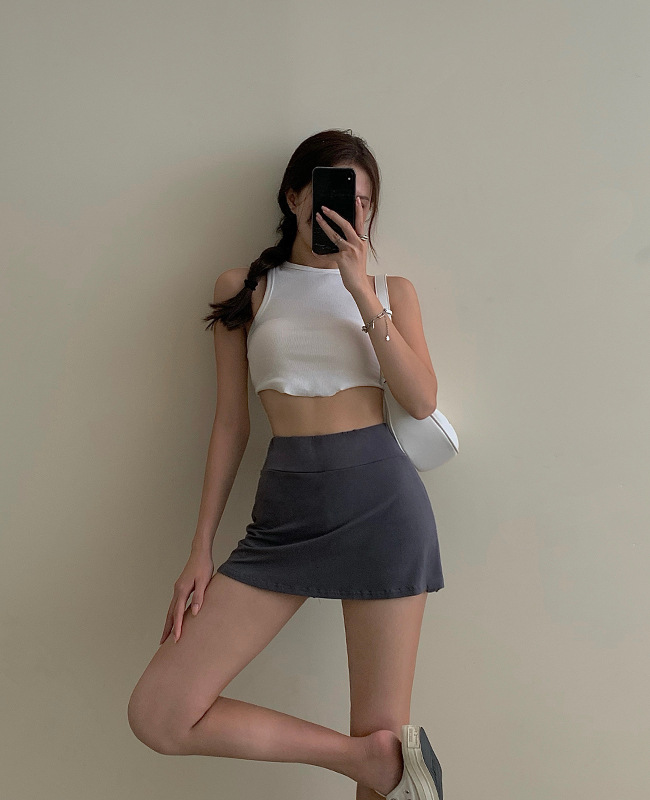 칼집 미니 스커트 소녀의 얇은 순수한 스타일 하이 웨이스트 스커트 여름 새로운주의 기계 분할 스포츠 퀼로트스토어 가기