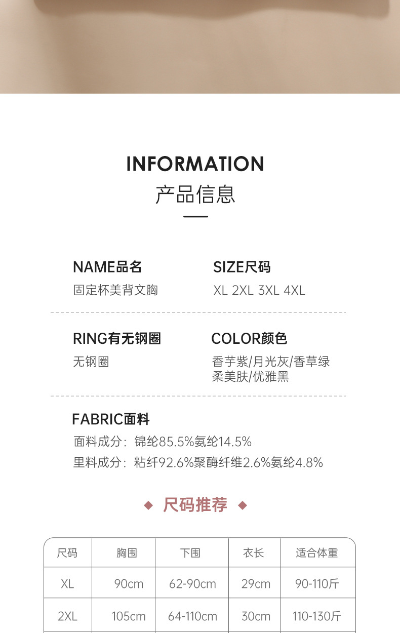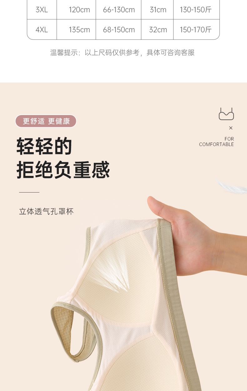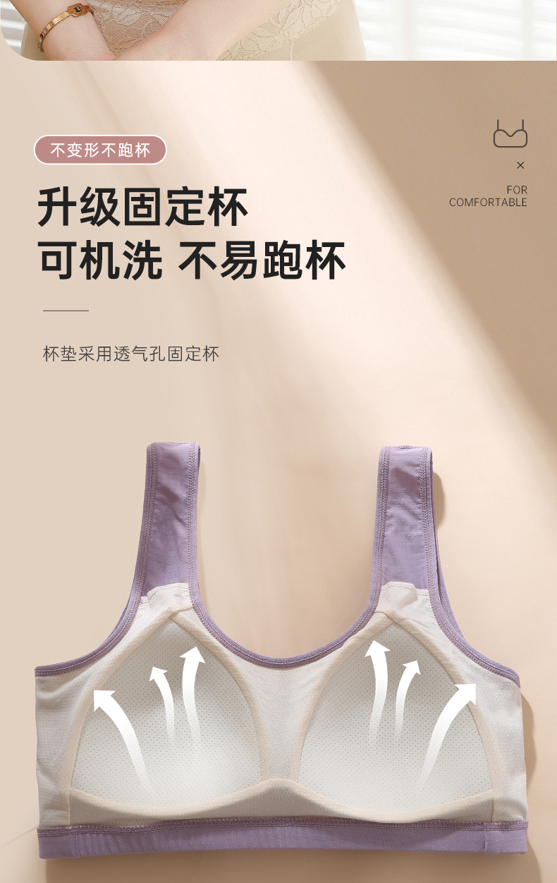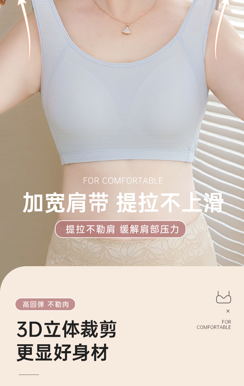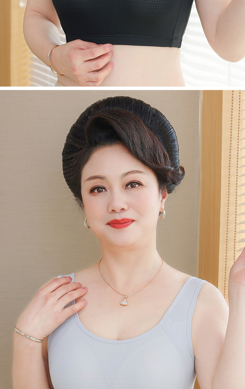 엄마의 속옷 여성용 조끼 스타일 브래지어 중년 여성용 고정 컵 아름다운 등 얇은 중년 및 노인의 무테 브래지어