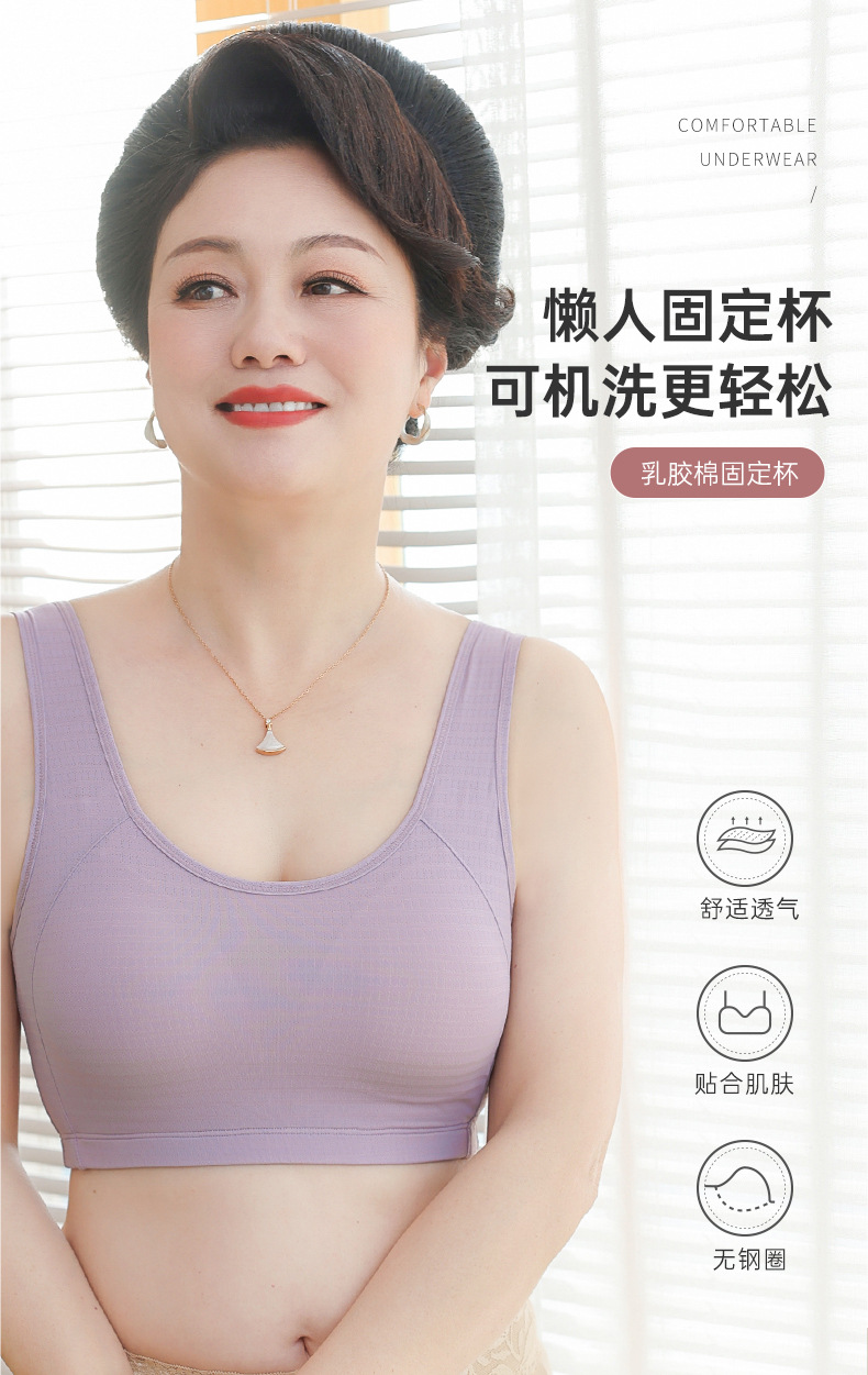 엄마의 속옷 여성용 조끼 스타일 브래지어 중년 여성용 고정 컵 아름다운 등 얇은 중년 및 노인의 무테 브래지어스토어 가기