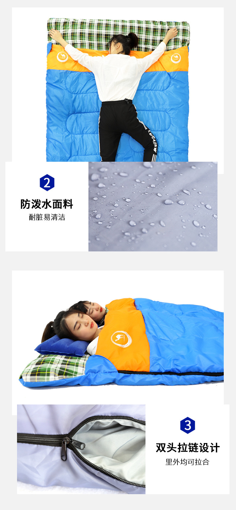 잠자는 가방 성인 야외 여행 두꺼운 따뜻한 성인 휴대용 캠핑 싱글 더블 슬리핑 백