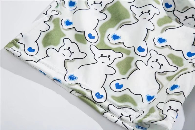 새로운 반팔 세트 남성 여름 한국 스타일 트렌디 인 플라워 셔츠 반바지 홍콩 스타일 루즈한 캐주얼 트렌디 브랜드 투피스 세트