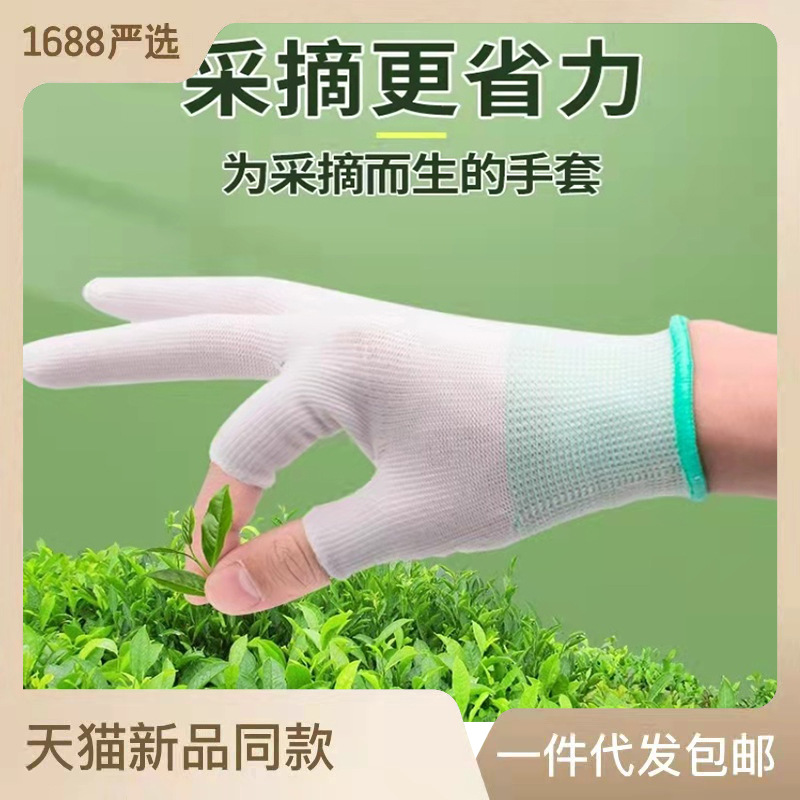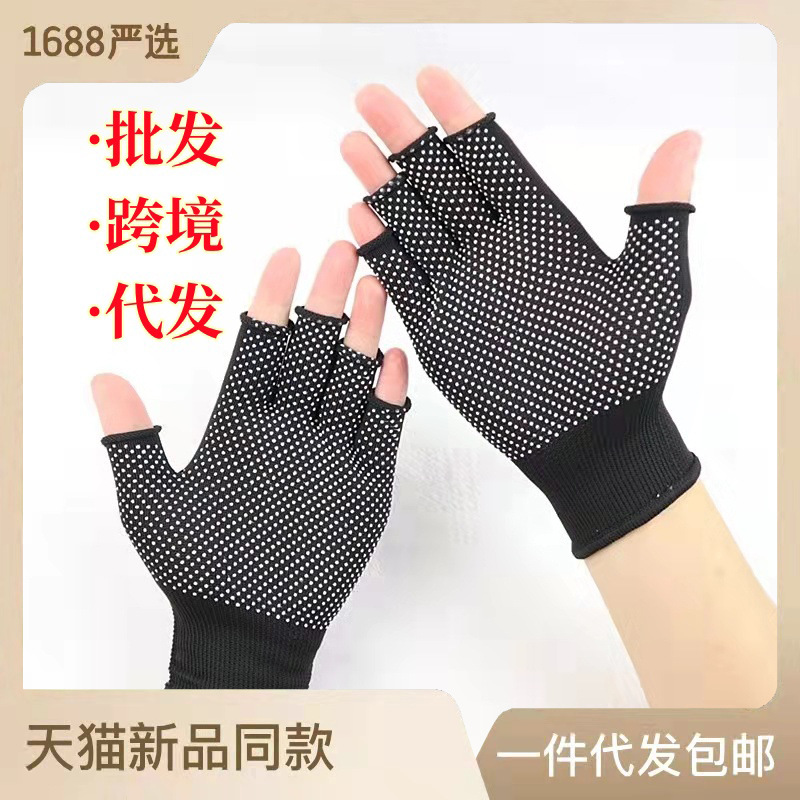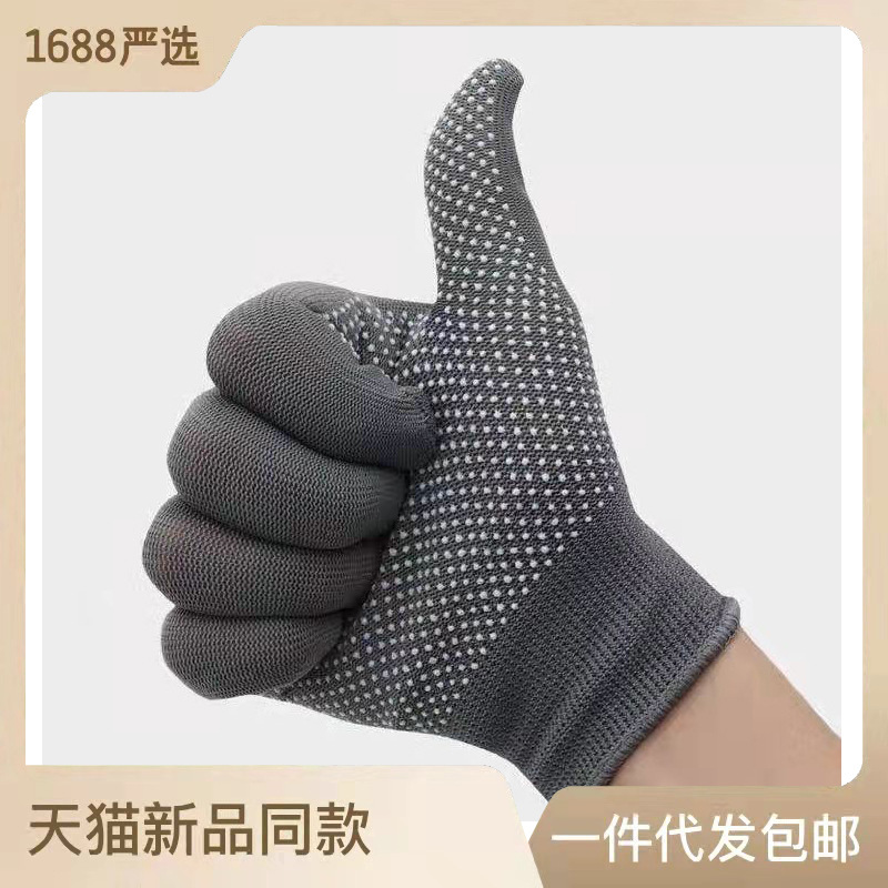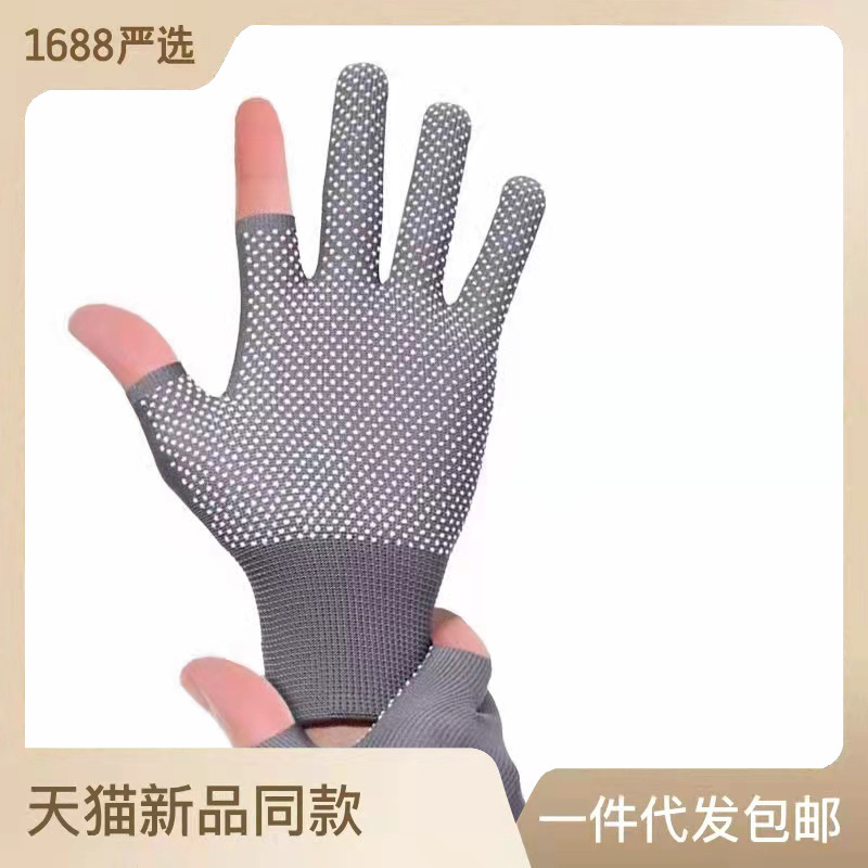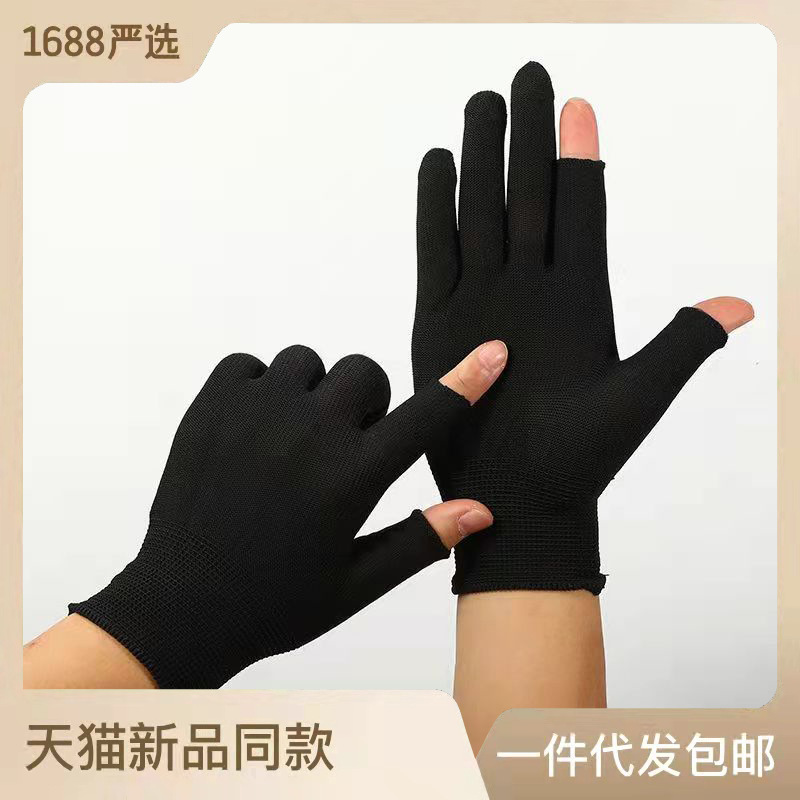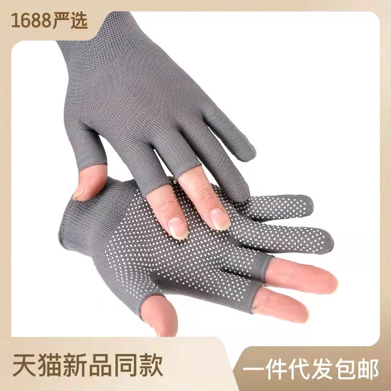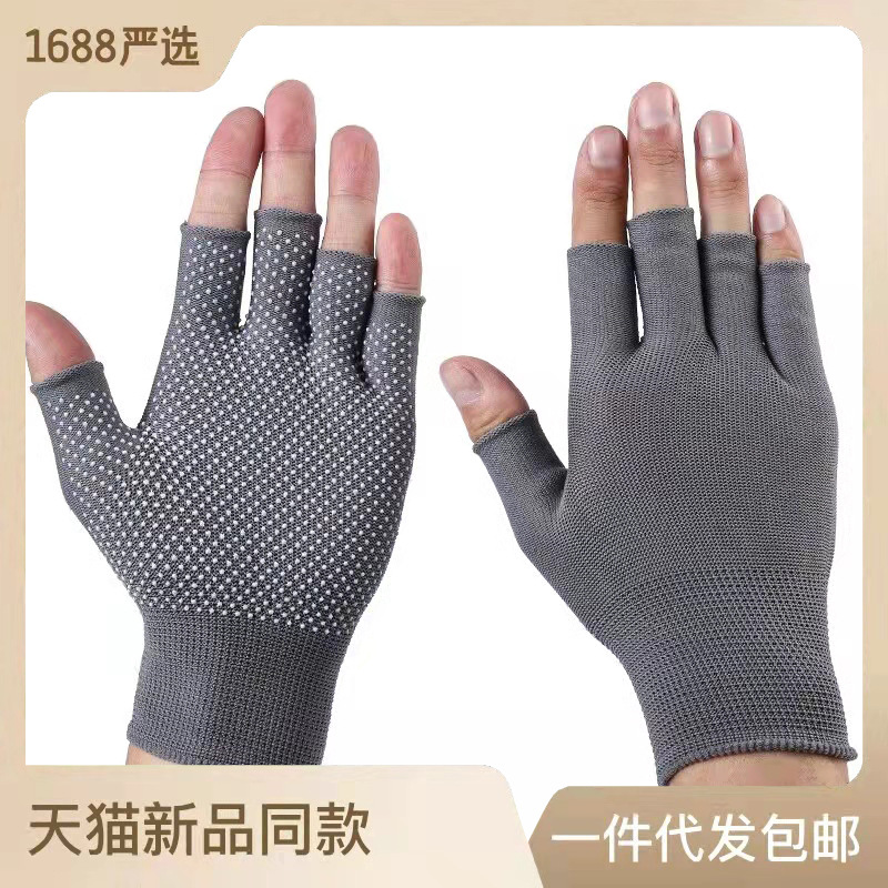 이슬 2 손가락 나일론 니트 도트 구슬 장갑 반 손가락 점 플라스틱 노동 보호 포장 비 슬립 바베큐 절연 나일론 드레인 손가락