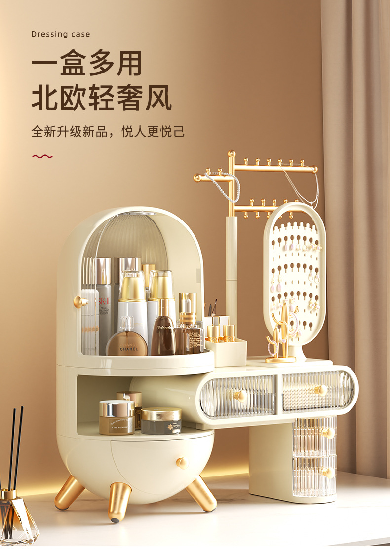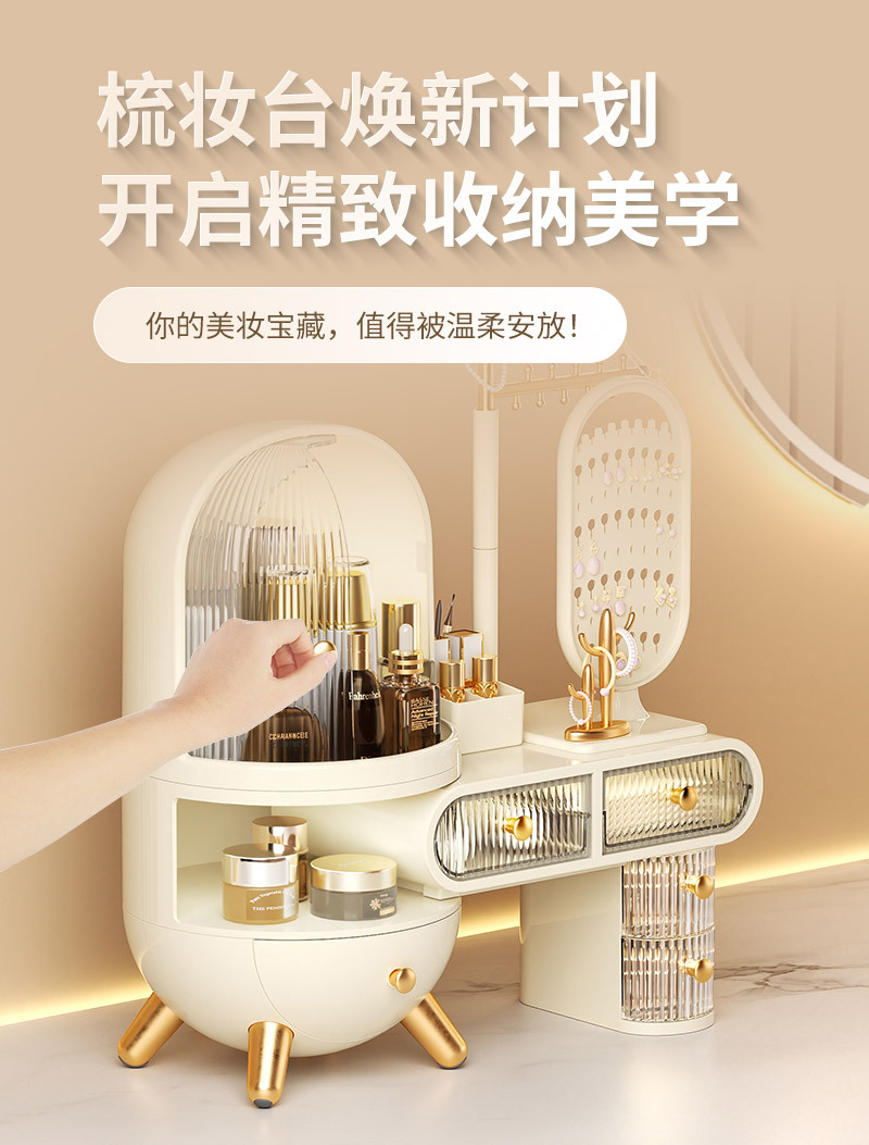 화장품 보관함 데스크탑 정리 방진 테이블 보석 스킨 케어 보관 캐비닛 기숙사 보관함 서랍 대용량