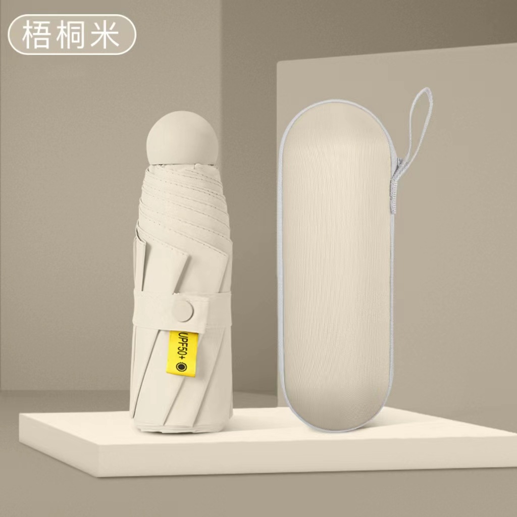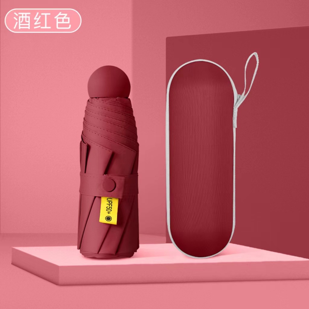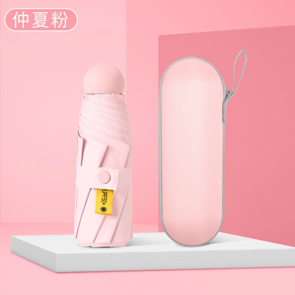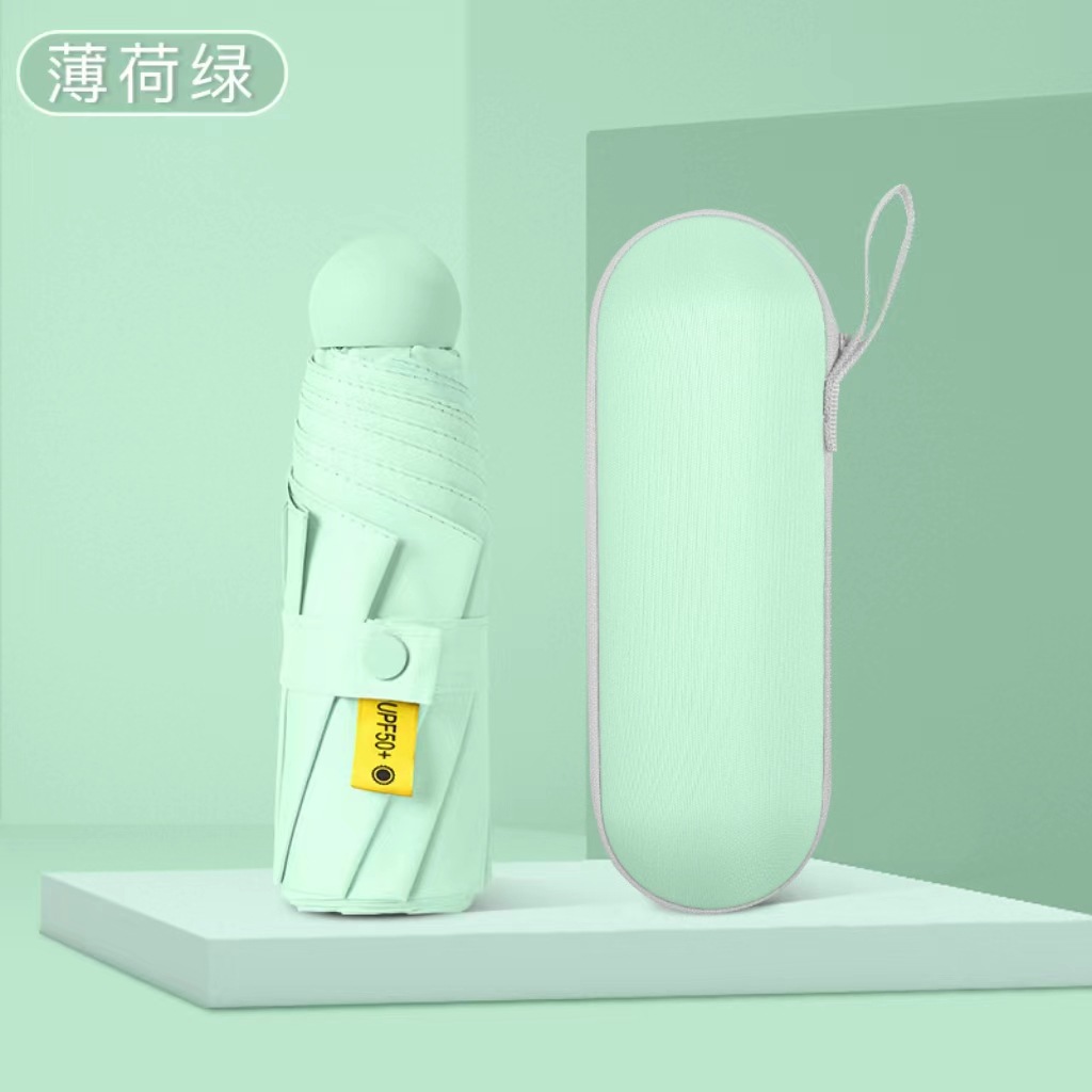 캡슐 5 배 우산 울트라 라이트 포켓 블랙 접착제 태양 보호 태양 보호 우산 도매 미니 휴대용 광고 맞춤형 인쇄스토어 가기