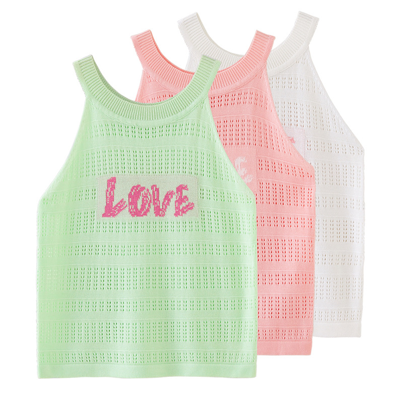 2025 얼음 실크 중공 소녀 조끼 여름 얇은 중소 어린이 니트 드롭 탑 드롭 배송스토어 가기