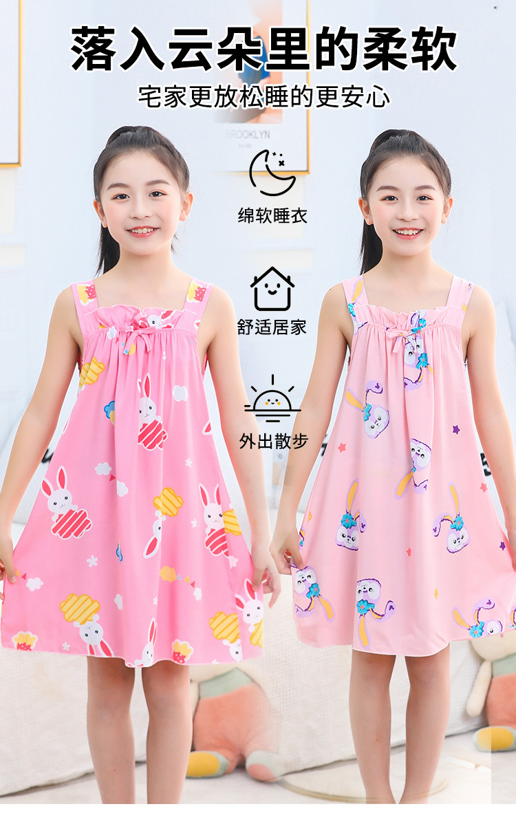 여름 어린이 잠옷 얇은 면 실크 공주 스트랩 스커트 여아 수면 치마 여아 민소매 잠옷 가정복스토어 가기