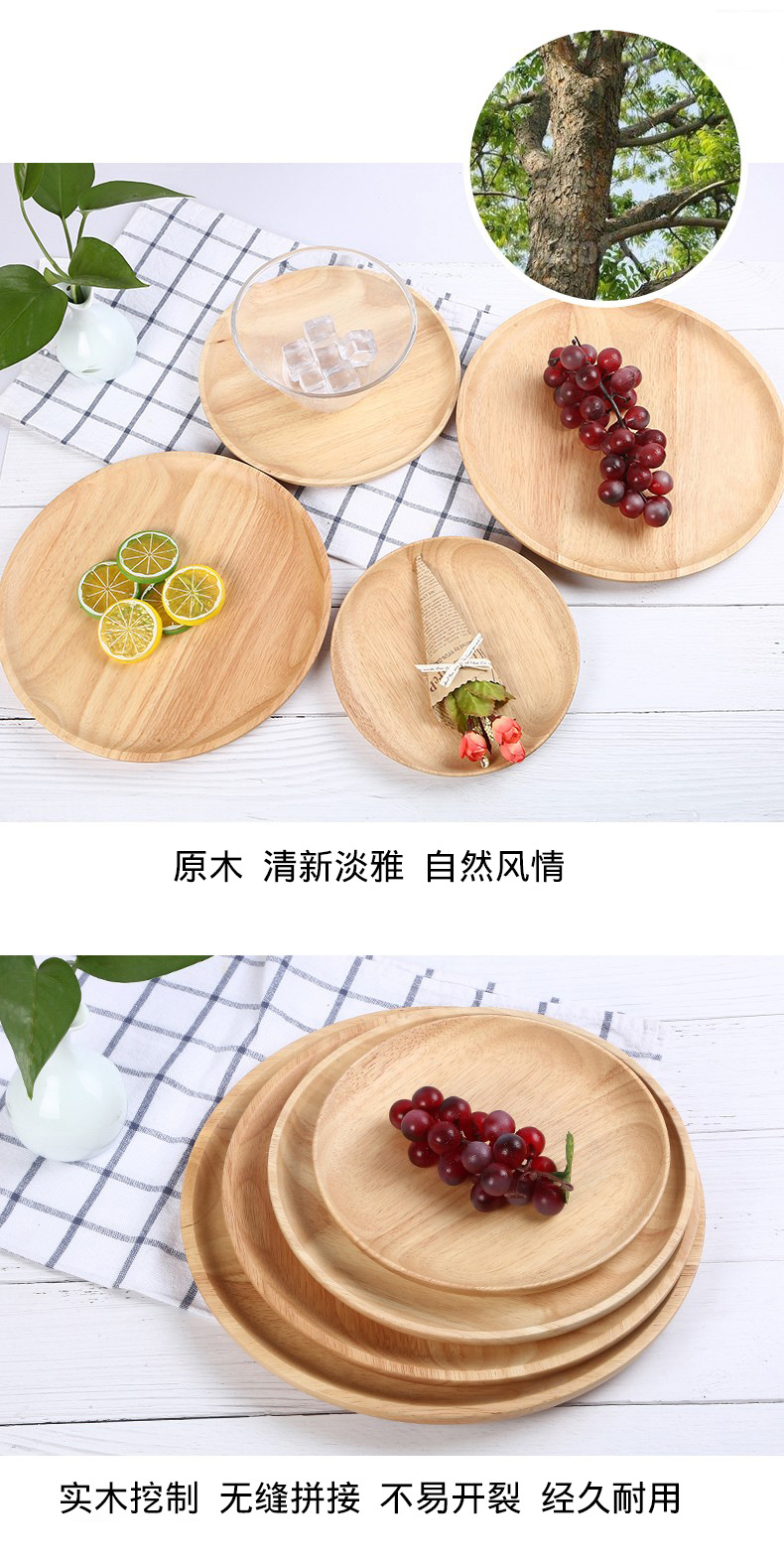 고무 나무 단단한 나무 트레이 일본 식기 샐러드 그릇 레터링 로고 빈티지 과일 플레이트 빵 플레이트 스낵 플레이트스토어 가기