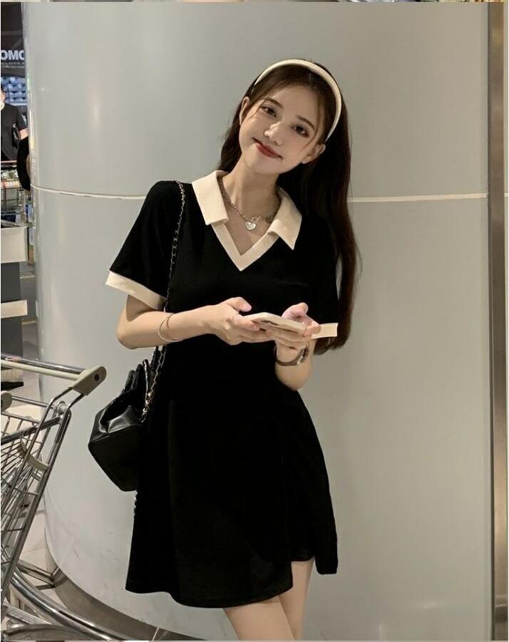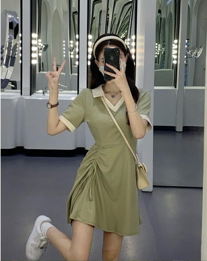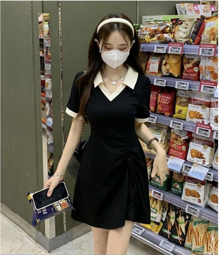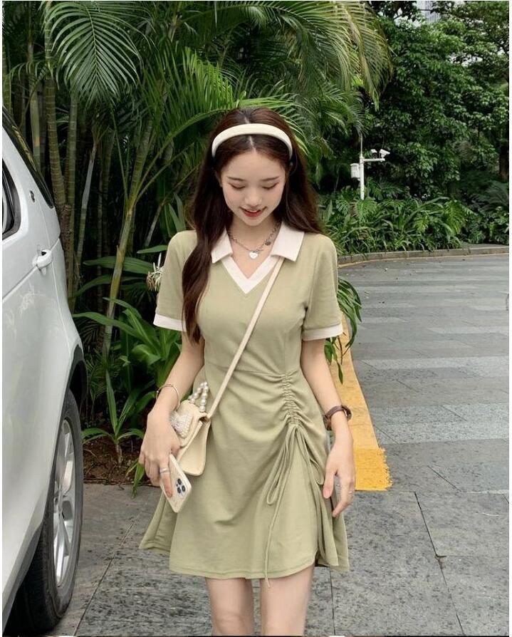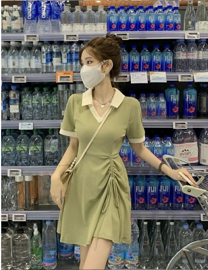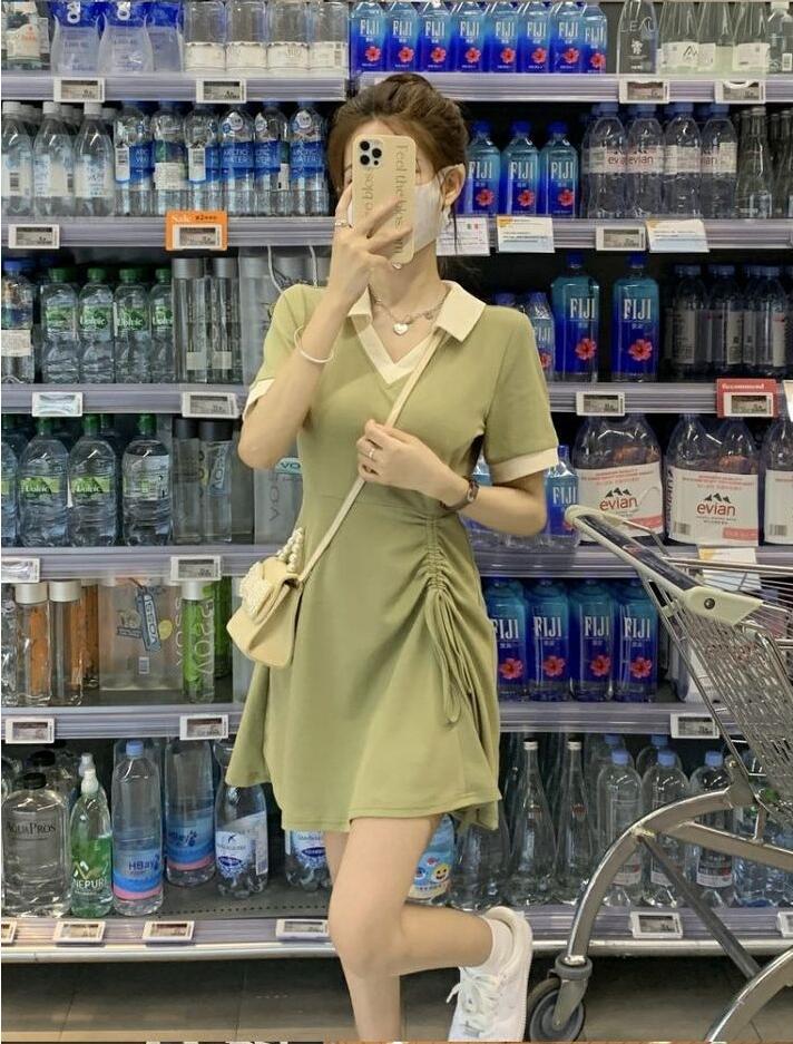 2023 새로운 플러스 사이즈 여성의 통통녀 살 커버 슬리밍 폴로 칼라 허리 고급 원피스 여성 여름 여성 의류스토어 가기