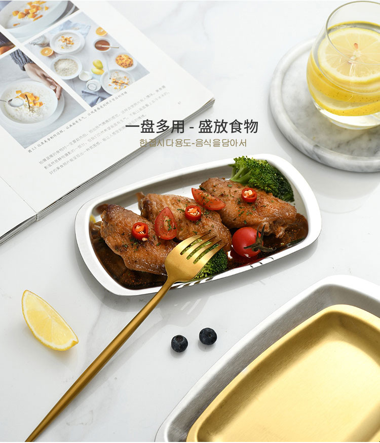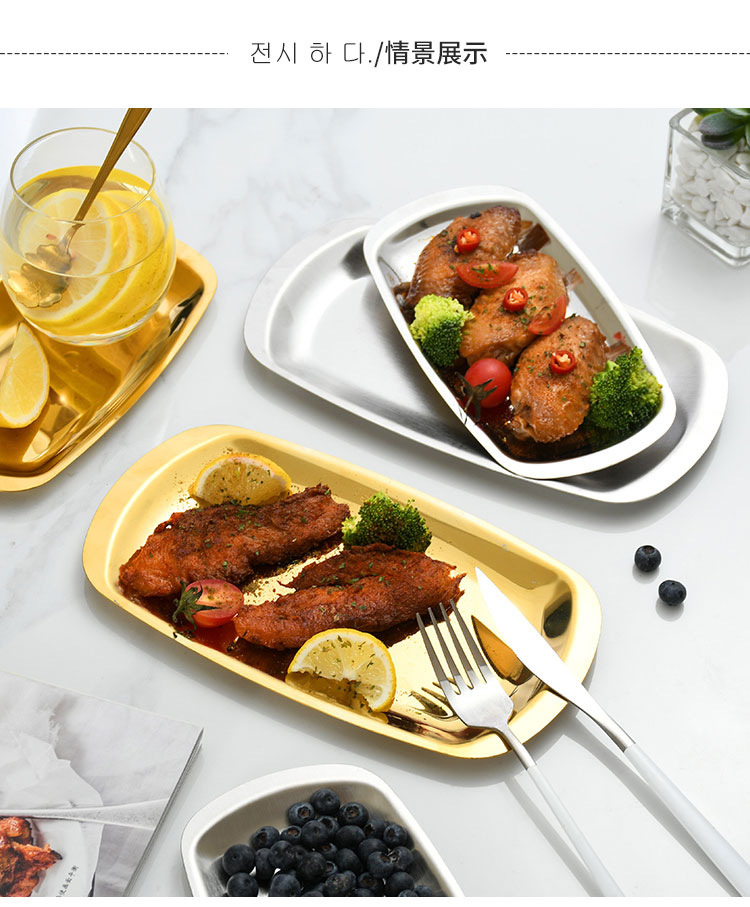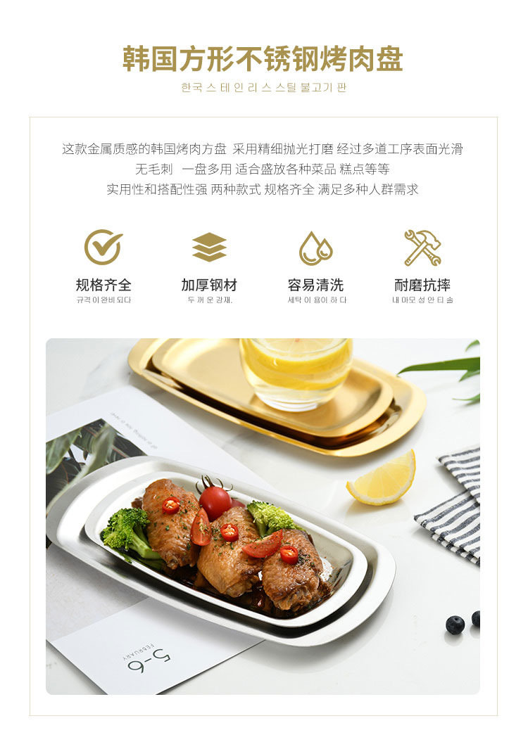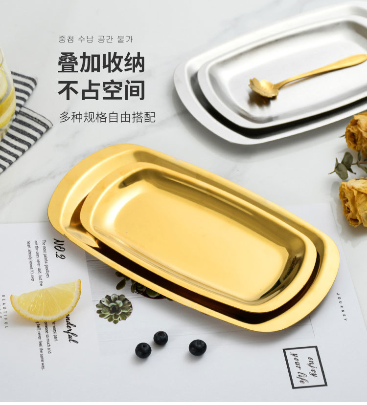 스테인레스 스틸 플레이트 디스크 한국식 바베큐 플레이트 타원형 보석 플레이트 플랫 바닥 트레이 상업용 두꺼운 뼈 접시스토어 가기
