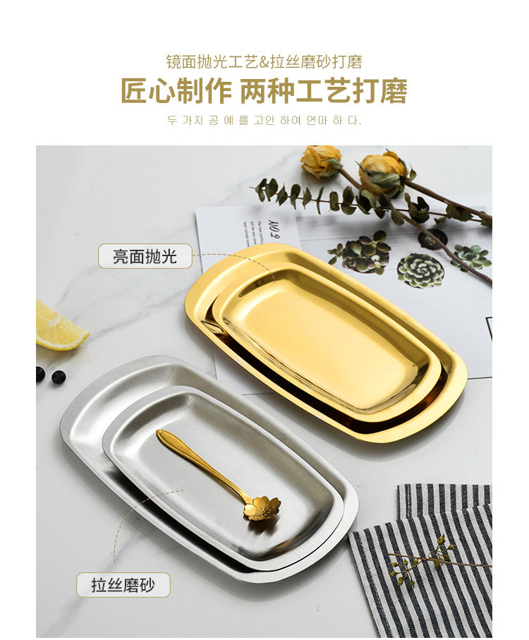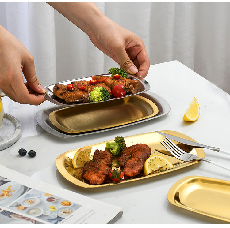 스테인레스 스틸 플레이트 디스크 한국식 바베큐 플레이트 타원형 보석 플레이트 플랫 바닥 트레이 상업용 두꺼운 뼈 접시
