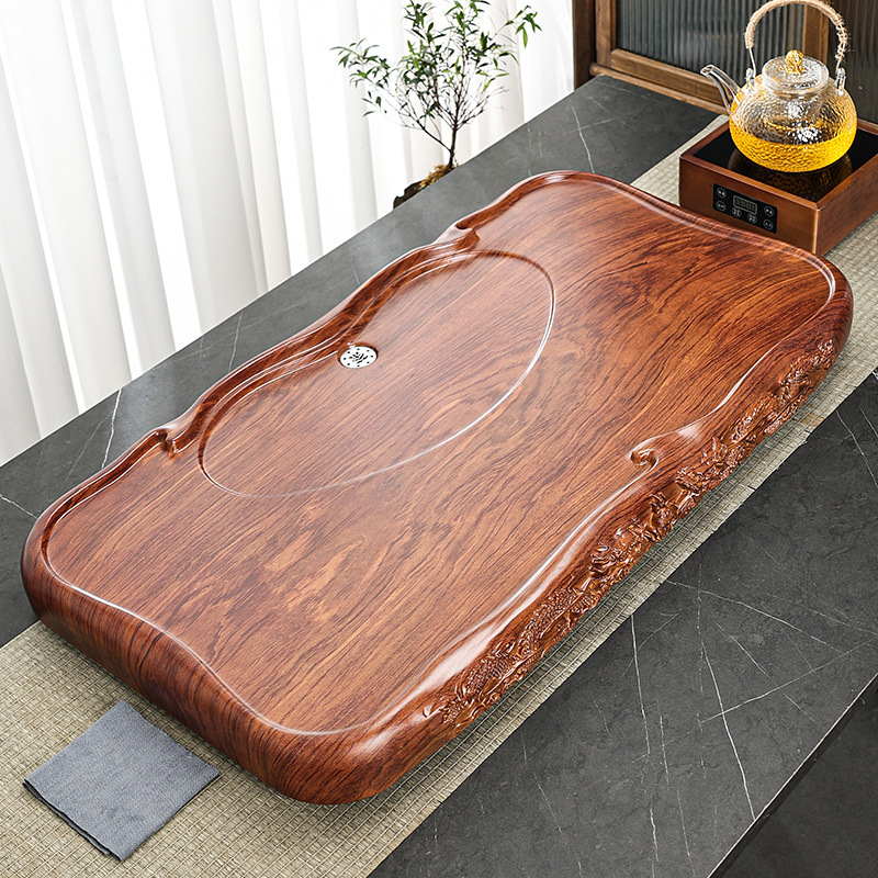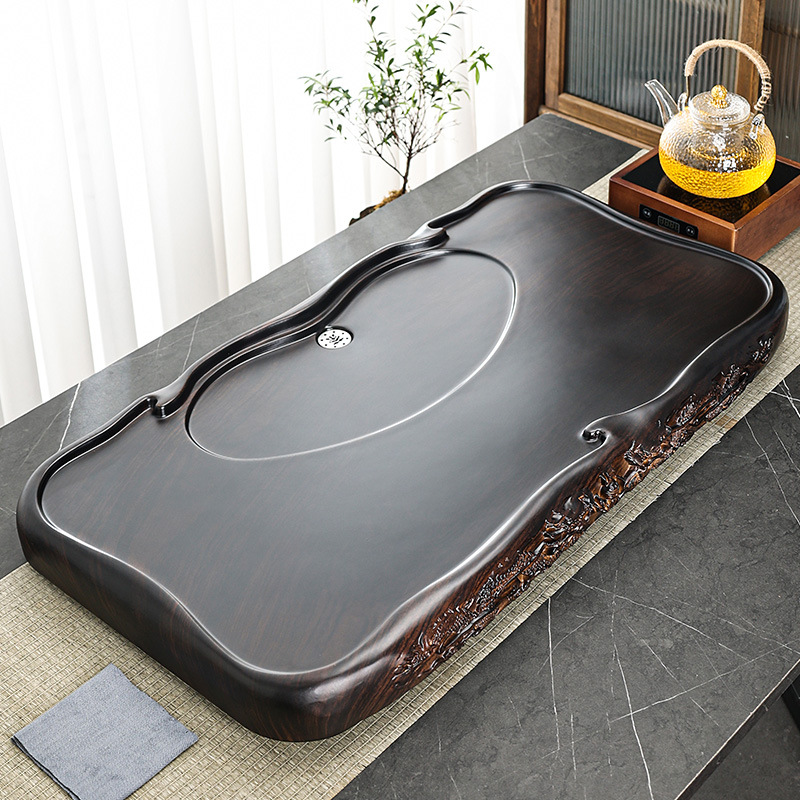 흑단 티 트레이 가정용 전체 로그 단단한 나무 차 바다 차 테이블 작은 새로운 쿵푸 차 세트 트레이 배수스토어 가기