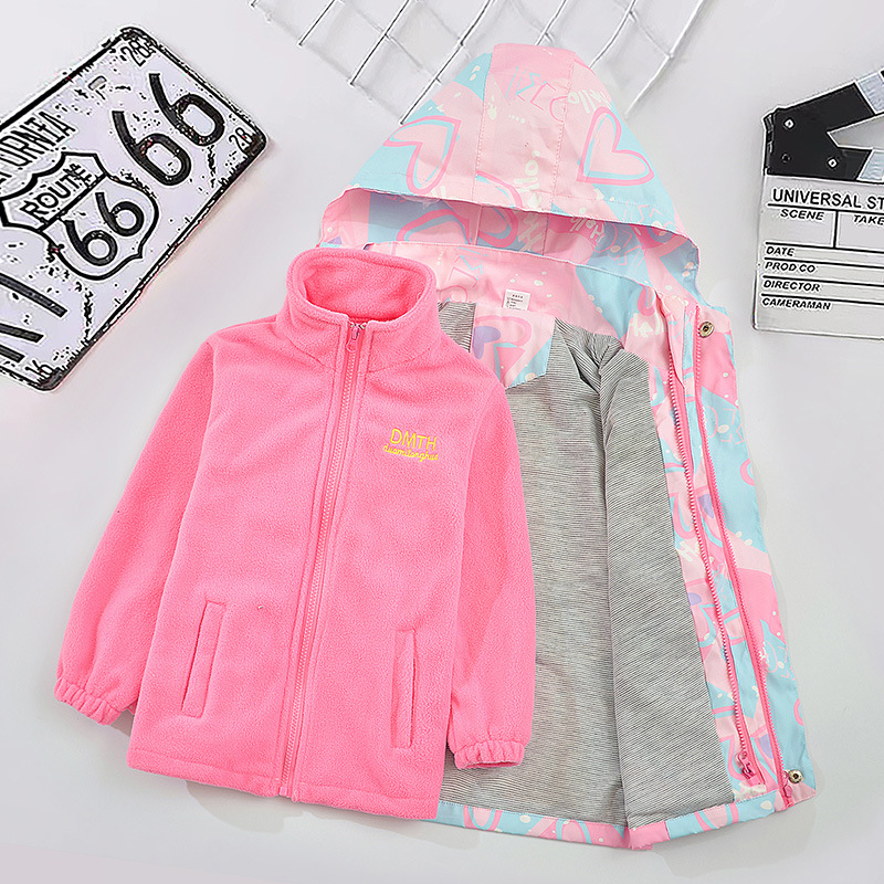 아동복 여아 2023 새로운 한국 스타일 봄과 가을 어린이 분리형 쓰리인원 재킷