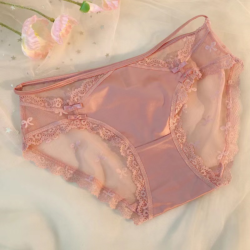 달빛 댄스 ~ 새로운 스타일 실키 새틴 섹시 레이스 속옷 여성용 미드 웨이스트 중공 삼각형 반바지 여름 얇은