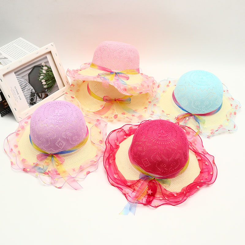 어린이 밀짚 모자 소녀 봄과 여름 공주 차양 태양 모자 여름 아기 해변 태양 모자 도매