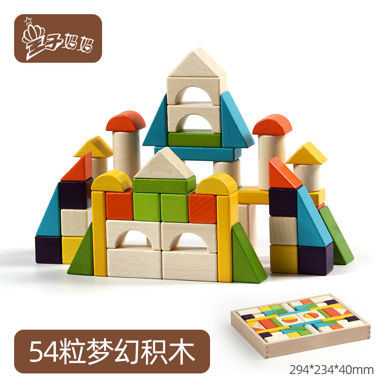 • 꿈의 빌딩 블록 54 개 + 나무 상자